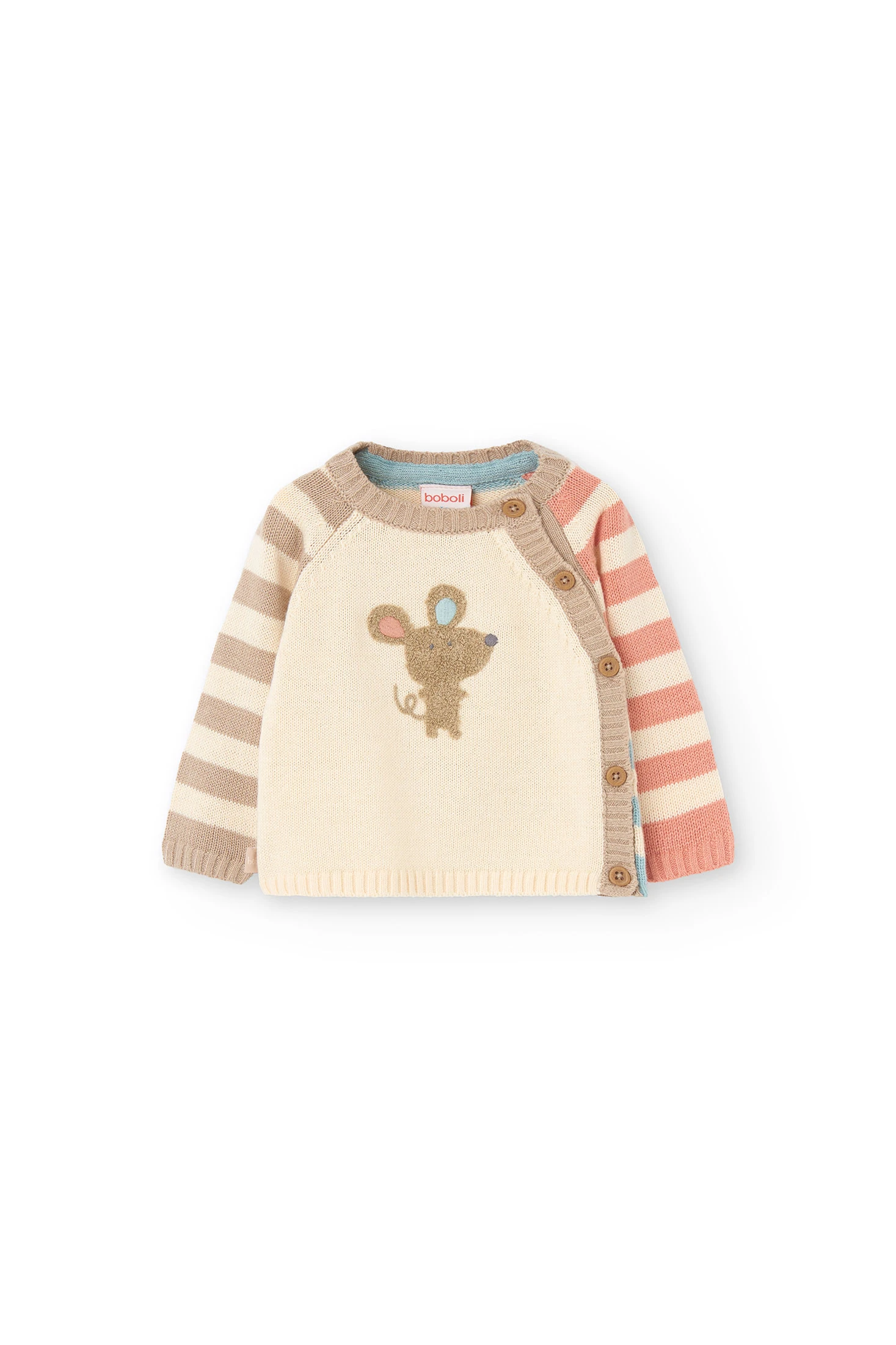 Pull rayé pour bébé confectionné avec des matériaux doux et de haute qualité garantissant le confort et le soin de la peau délicate des plus petits. Parfait pour la saison automne-hiver, il offre chaleur sans compromettre la liberté de mouvement. Disponible en plusieurs tailles, il s'ajuste parfaitement aux besoins des bébés et des tout-petits. Se marie facilement avec des pantalons, salopettes ou jupes, permettant de créer des looks confortables et à la mode. Son design conserve la forme et la couleur même après plusieurs lavages, garantissant un vêtement durable et pratique pour le quotidien.
