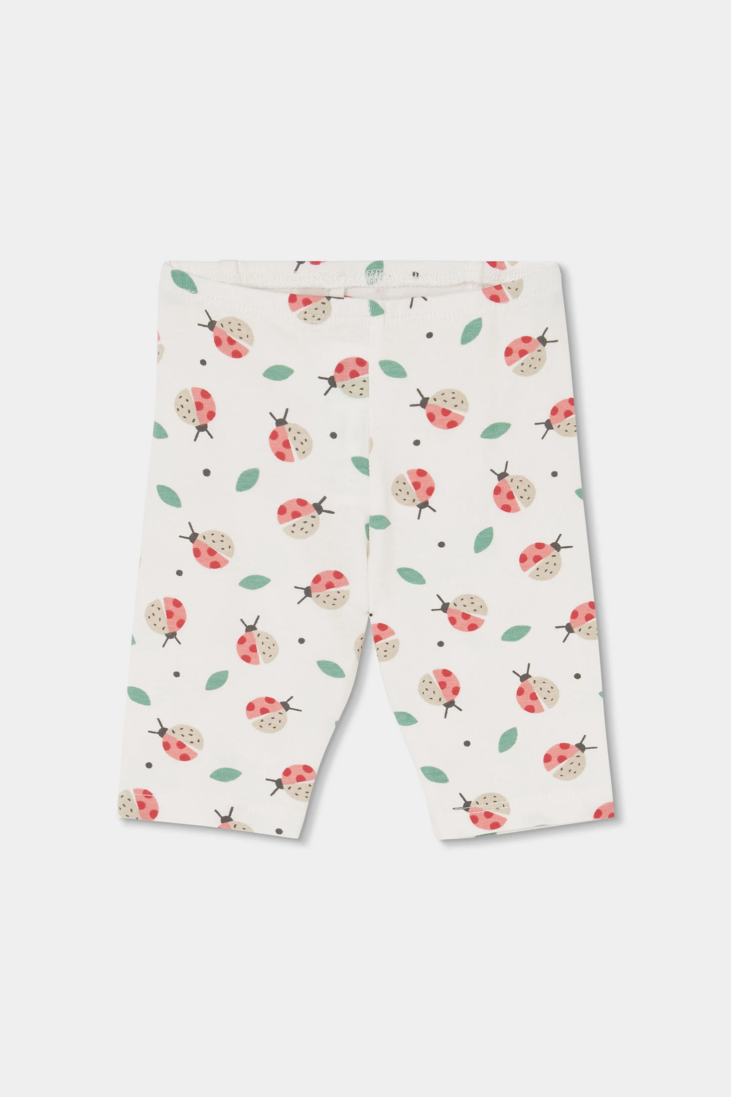 Ensemble en maille de coton et coton élastique pour bébé fille. Disponible en tailles de 1 mois à 24 mois. Composé d'un t-shirt rouge à manches courtes, avec des boutons-pression au dos qui facilitent le changement. Disponible en tailles de 0 mois à 24 mois, s'adaptant à la croissance du bébé, avec une décoration de coccinelle amusante et des leggings corsaires sur fond blanc avec un imprimé de coccinelles, parfait pour un style doux et joyeux. La douce maille de coton offre confort et facilité de mouvement.