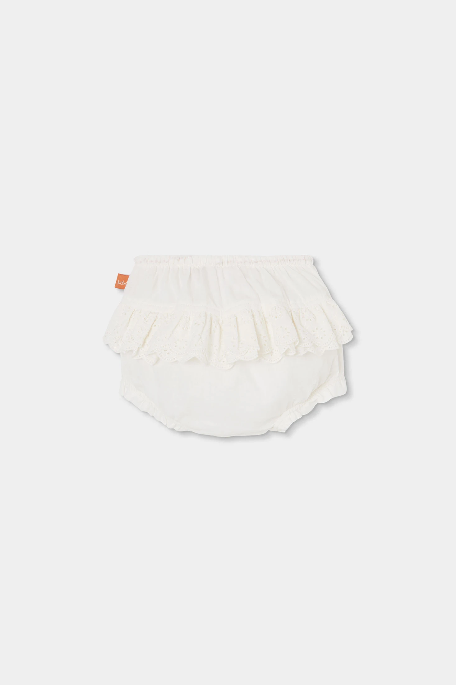 Ensemble en batiste blanche pour bébé fille, parfait pour garder votre petite confortable et à la mode. Comprend un design avec des détails de broderie sur le bord tant au niveau du haut sans manches que des volants des épaules, offrant une finition élégante. Disponible en tailles de 1 mois à 24 mois. Son design aéré est idéal pour les mois les plus chauds, permettant un mouvement libre et de la fraîcheur. Un choix adorable et pratique pour toute garde-robe de bébé.