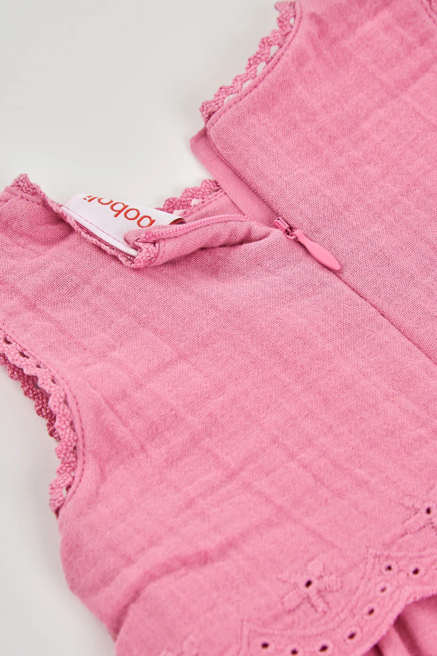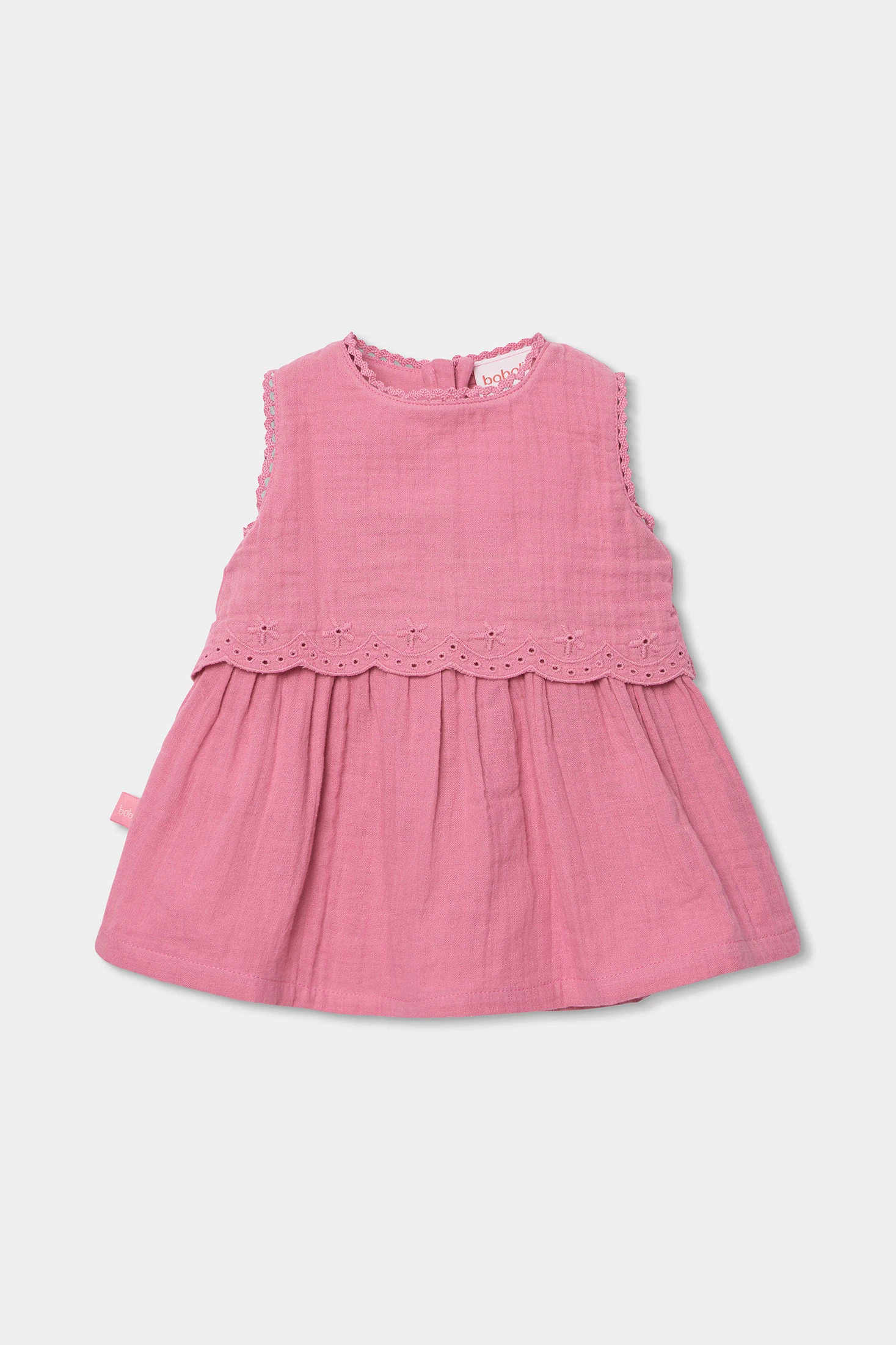Robe en coton rose pour bébé, parfaite pour les tout-petits. Son design sans manches et la délicate broderie sur le bord lui confèrent une touche élégante. Fabriqué en coton doux, il est idéal pour assurer le confort. Les tailles disponibles vont de 1M à 24M, s'adaptant à la croissance de votre bébé. La couleur rose douce le rend polyvalent pour toutes les occasions, tandis que sa légèreté en fait une option parfaite pour les climats chauds. Associez-le avec des accessoires simples pour un look adorable et frais.