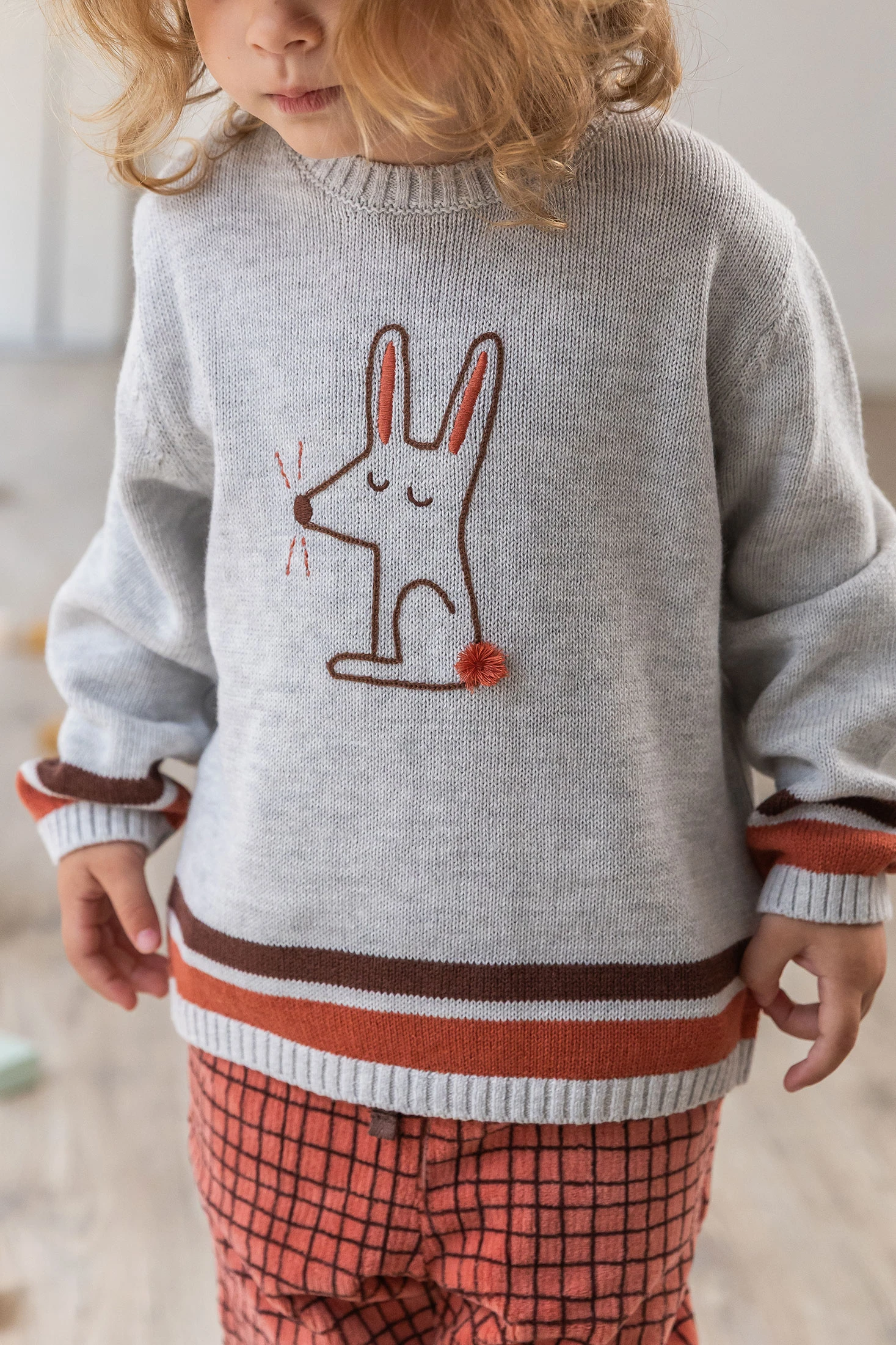 Ensemble en maille pour enfant dans une teinte écrue avec un motif à carreaux, idéal pour la saison automne-hiver. Il se compose d'un pull en tricot doux qui garantit confort et chaleur, et d'un pantalon avec un délicat motif à carreaux ajoutant une touche classique et élégante. Disponible en tailles de 1 mois à 2 ans, il est parfait pour que les petits aient du style durant leurs activités quotidiennes. Associez cet ensemble avec des bottes d'automne ou des chaussettes assorties pour un look enfantin à la fois confortable et sophistiqué.