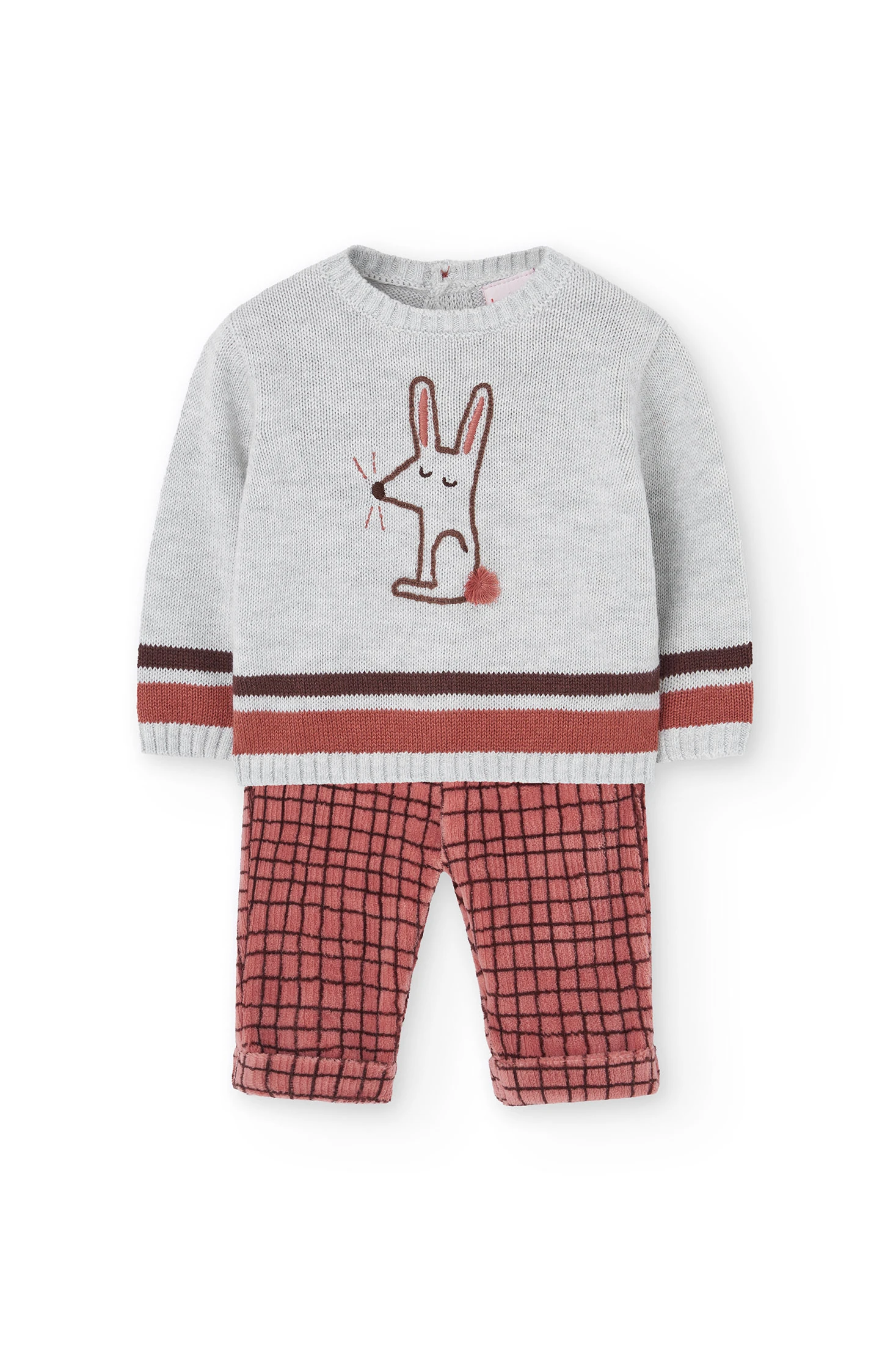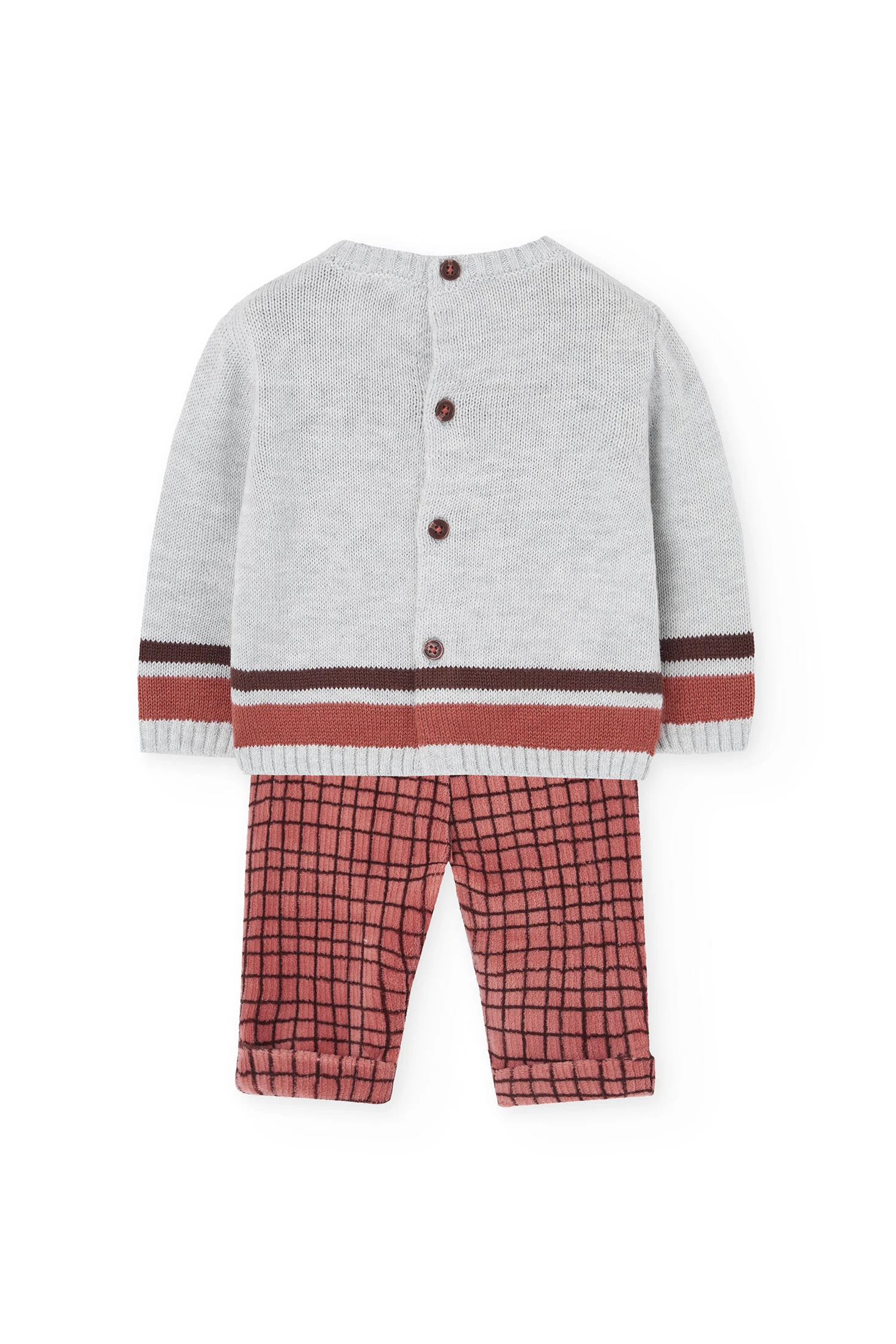 Ensemble bébé en tricot gris à carreaux