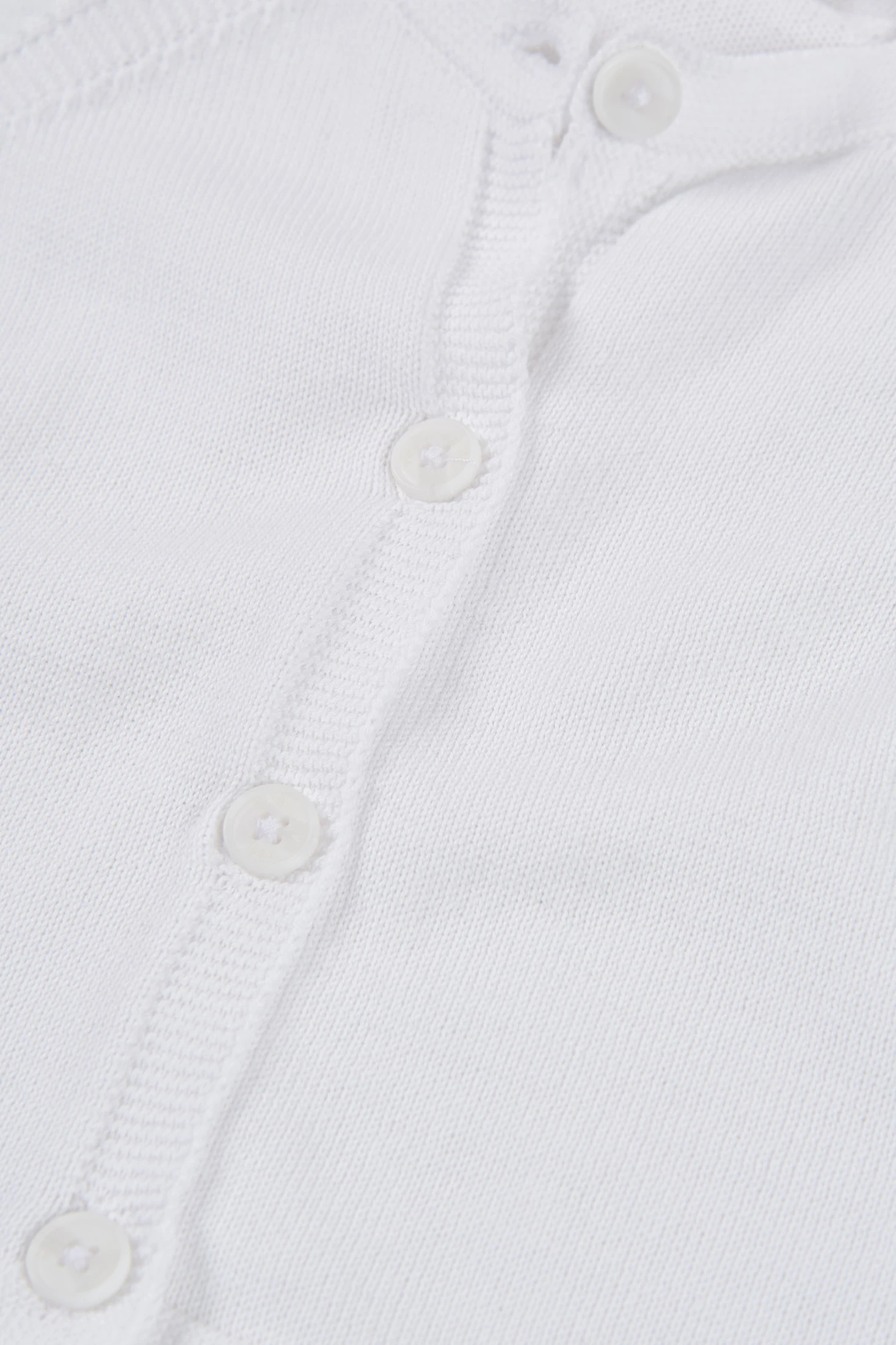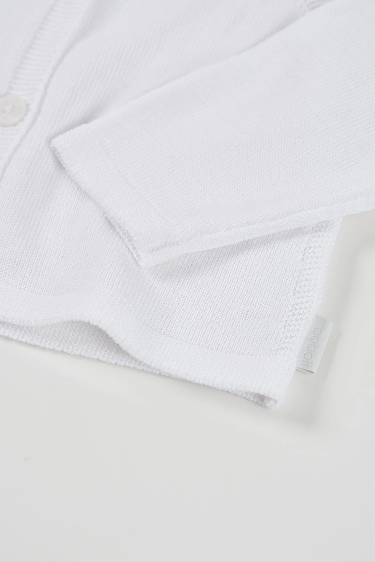 Veste en tricot blanc pour bébé idéale pour garder votre petit au chaud pendant le printemps. Le tissu en tricot est doux et confortable, parfait pour un usage quotidien. Disponible en tailles de 1 mois à 2 ans, elle s'adapte à la croissance de votre bébé. Avec une fermeture à boutons, ce vêtement est pratique et élégant. La couleur blanche la rend facilement combinable avec d'autres vêtements de la garde-robe enfantine.