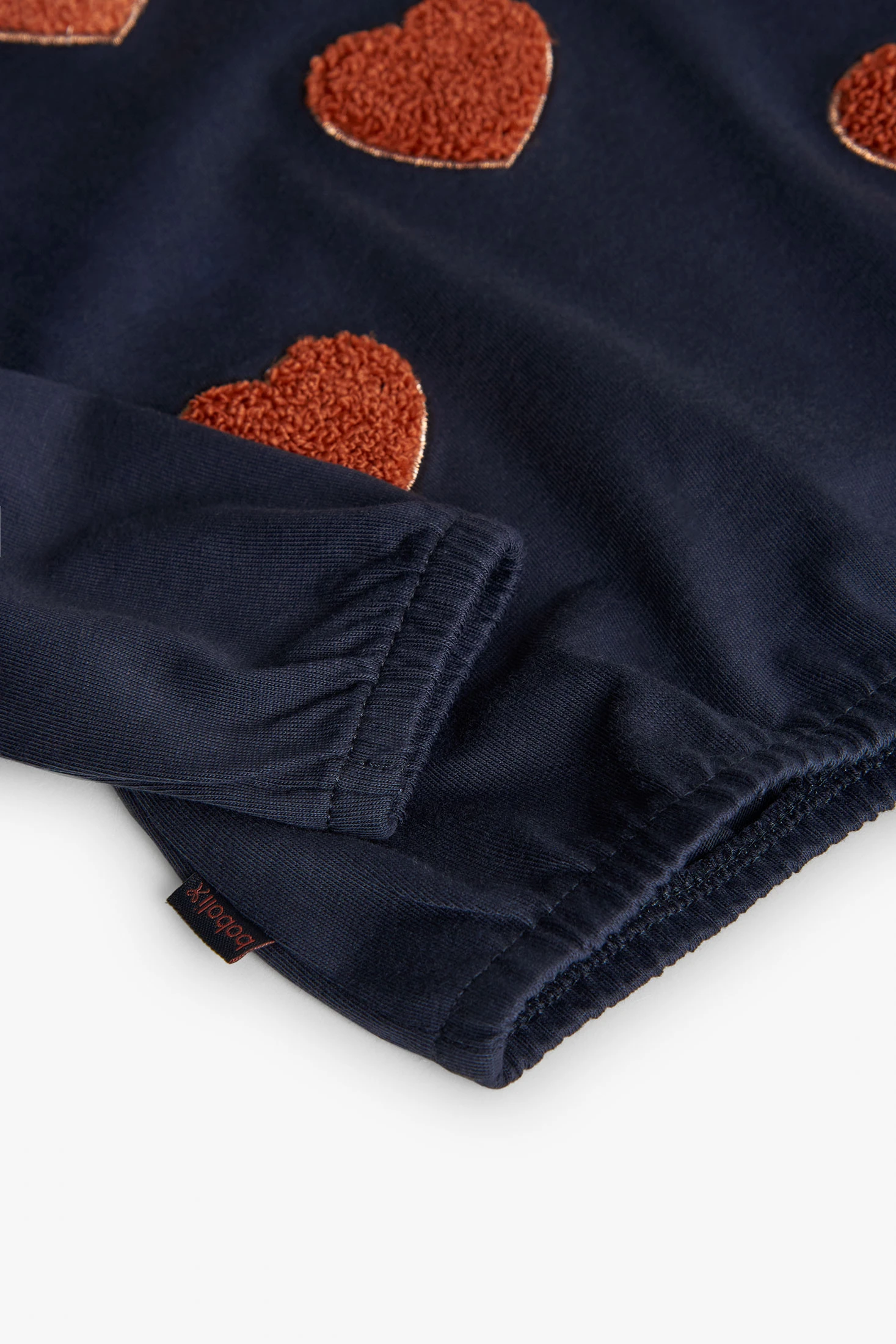 T-shirt en maille pour fille de couleur grise, parfaite pour les saisons d'automne et d'hiver, offrant confort grâce à son tissu doux et élastique. Un charmant motif de cœurs, un col rond et des manches longues en font une option chaude et polyvalente pour les journées les plus froides. Disponible en tailles de 12 mois à 10 ans, elle est idéale pour un usage quotidien et se combine facilement avec des leggings ou des salopettes, offrant un look adorable et moderne pour votre enfant.