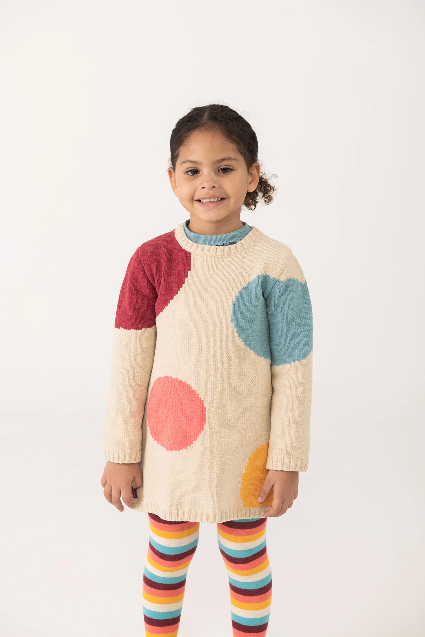 Robe en maille pour fille beige avec des pois délicats, offrant un style classique et élégant. Idéale pour les mois les plus frais, la matière en maille garantit chaleur et confort. Conçue avec un col rond et des boutons pratiques sur l'épaule, elle facilite le changement de vêtements. Disponible en tailles pour les âges de 12 mois à 10 ans. Associez-la avec des collants ou des leggings dans des tons neutres pour un look adorable et complet.