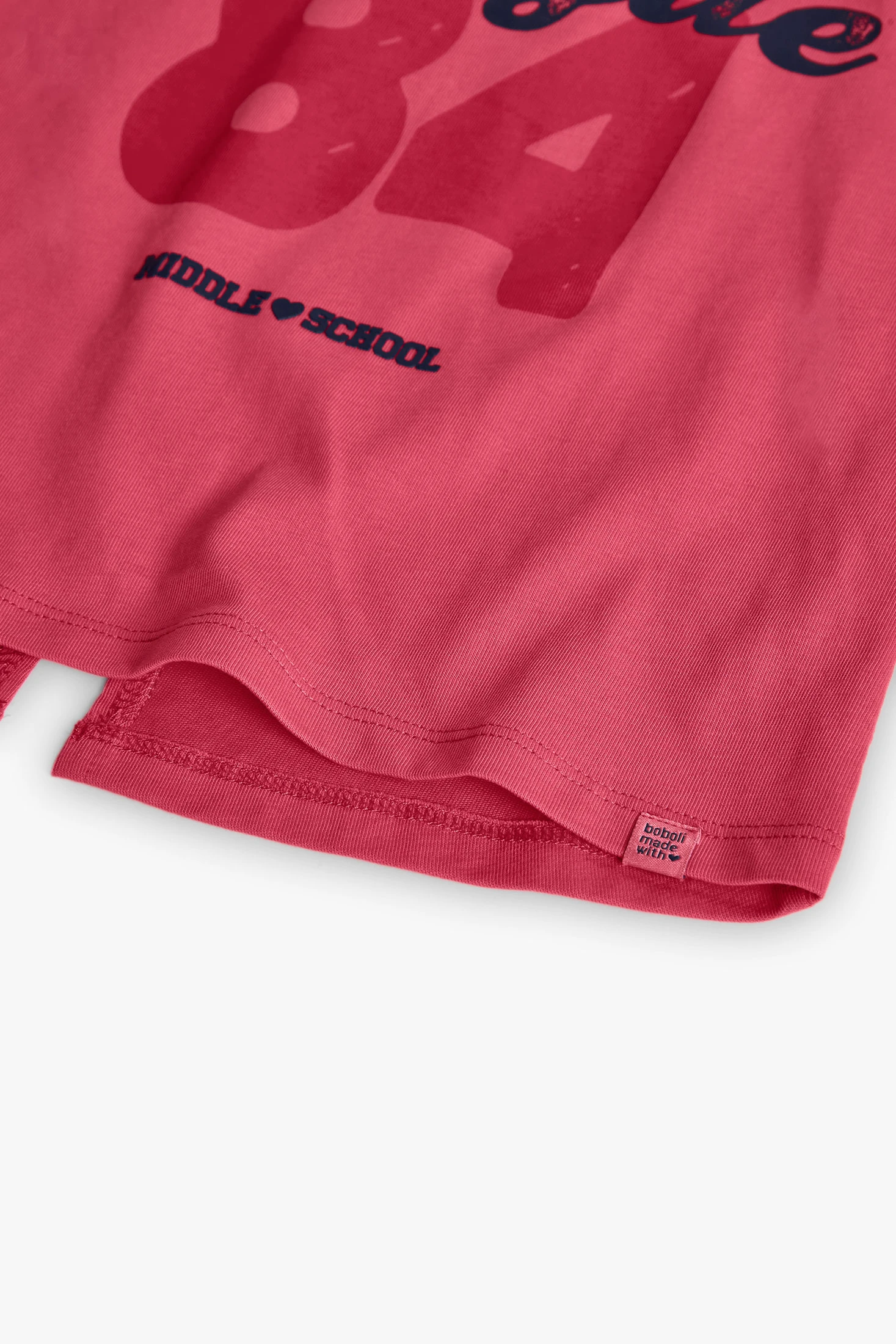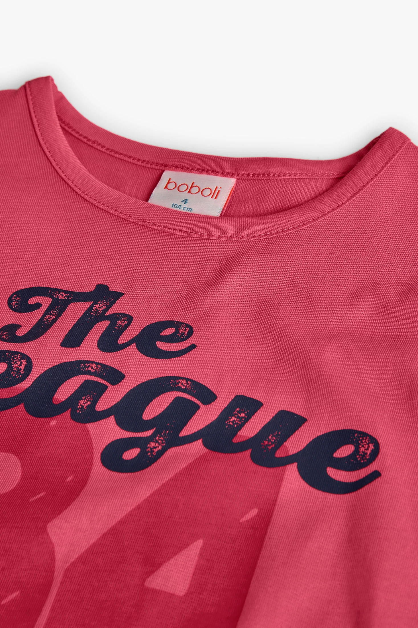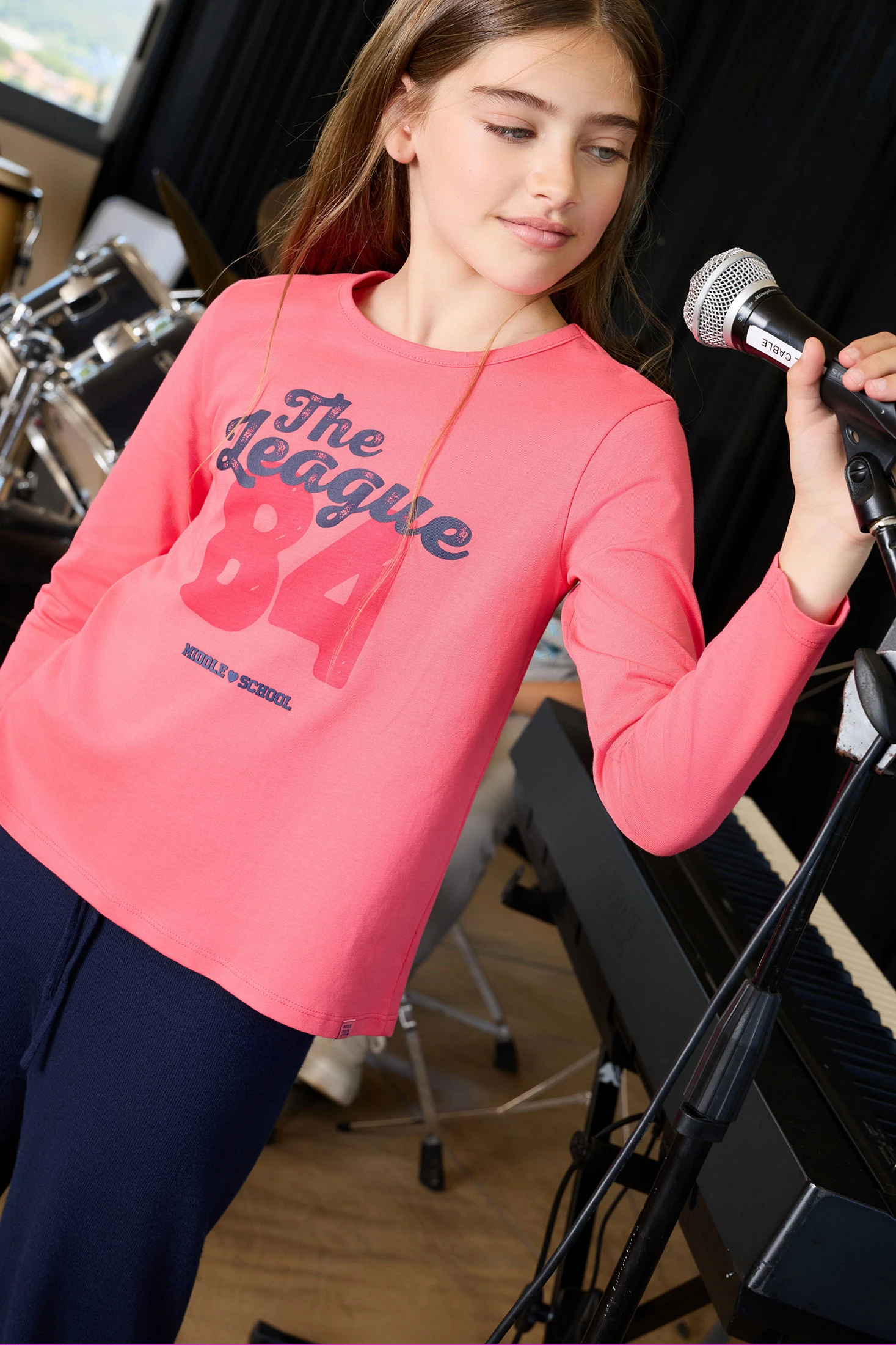 T-shirt en tricot de couleur magenta avec lettres idéale pour enfants pendant les saisons d'automne et d'hiver, offrant confort avec un style moderne. Faite en tissu tricoté doux, elle présente un design avec les mots "The League 84" en couleur marine qui apporte une touche frappante et distinctive. Parfaite pour un usage quotidien ou des événements décontractés, elle se combine facilement avec des jeans ou des pantalons pour obtenir un look confortable et moderne. Disponible en tailles de 2 à 14 ans, elle constitue un choix pratique et polyvalent pour la garde-robe de vos enfants.