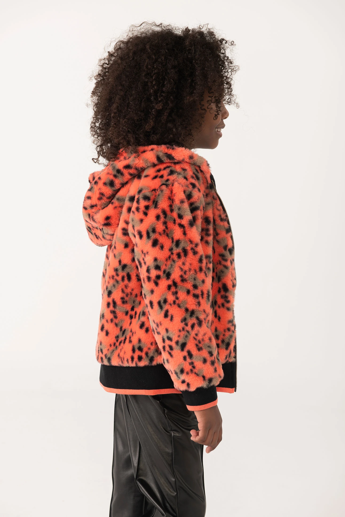 Veste en maille douce pour fille en couleur saumon vibrante, idéale pour les saisons d'automne et d'hiver. Elle présente un charmant design de taches en noir qui apportent une touche amusante et moderne. Confectionnée pour offrir chaleur et confort, elle est disponible en tailles allant de 2 à 14 ans. Sa structure avec capuche et fermeture éclair offre une protection supplémentaire contre le froid. Parfaite pour se marier avec des jeans ou des jupes, c'est un vêtement polyvalent qui rehausse n'importe quelle tenue quotidienne avec style.