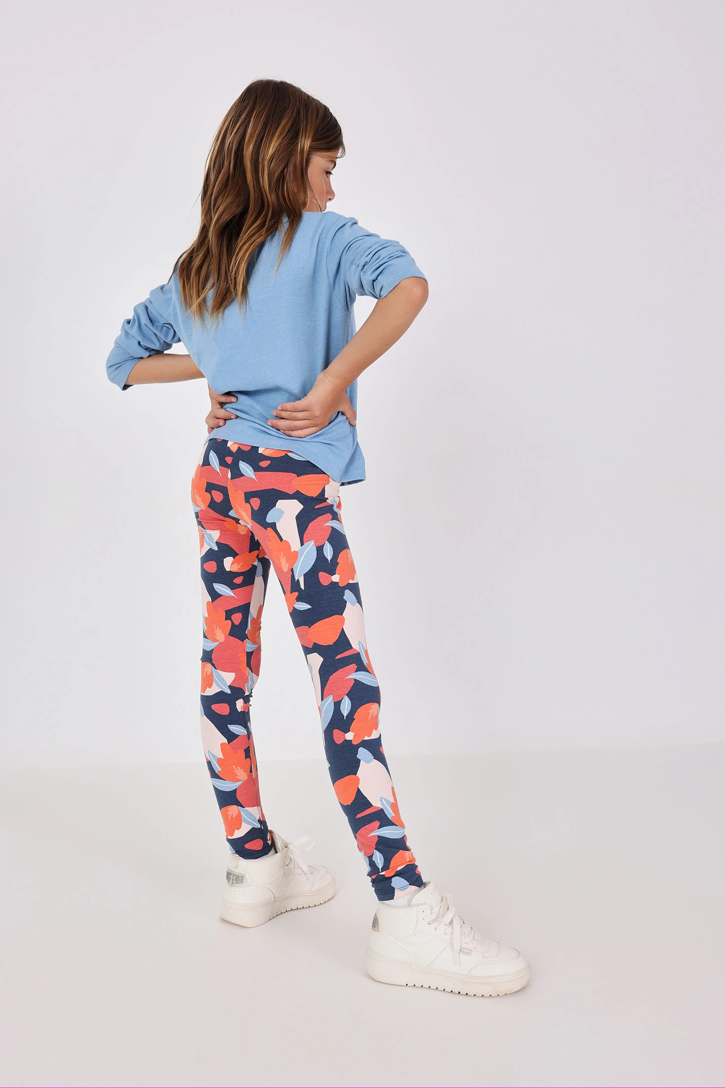 Leggings en maille extensible de couleur bleue avec un motif floral pour filles, ajoutent une touche artistique et moderne à la tenue enfantine. Parfaits pour toutes les saisons, ces leggings offrent confort et flexibilité grâce à leur tissu doux et adaptable. Disponibles en tailles de 2 à 14 ans, ils sont idéals pour être combinés avec des t-shirts, des robes ou des pulls, créant ainsi des ensembles polyvalents et tendance. Un vêtement indispensable dans la garde-robe des enfants qui permet de jouer ou de se reposer en toute liberté de mouvement.