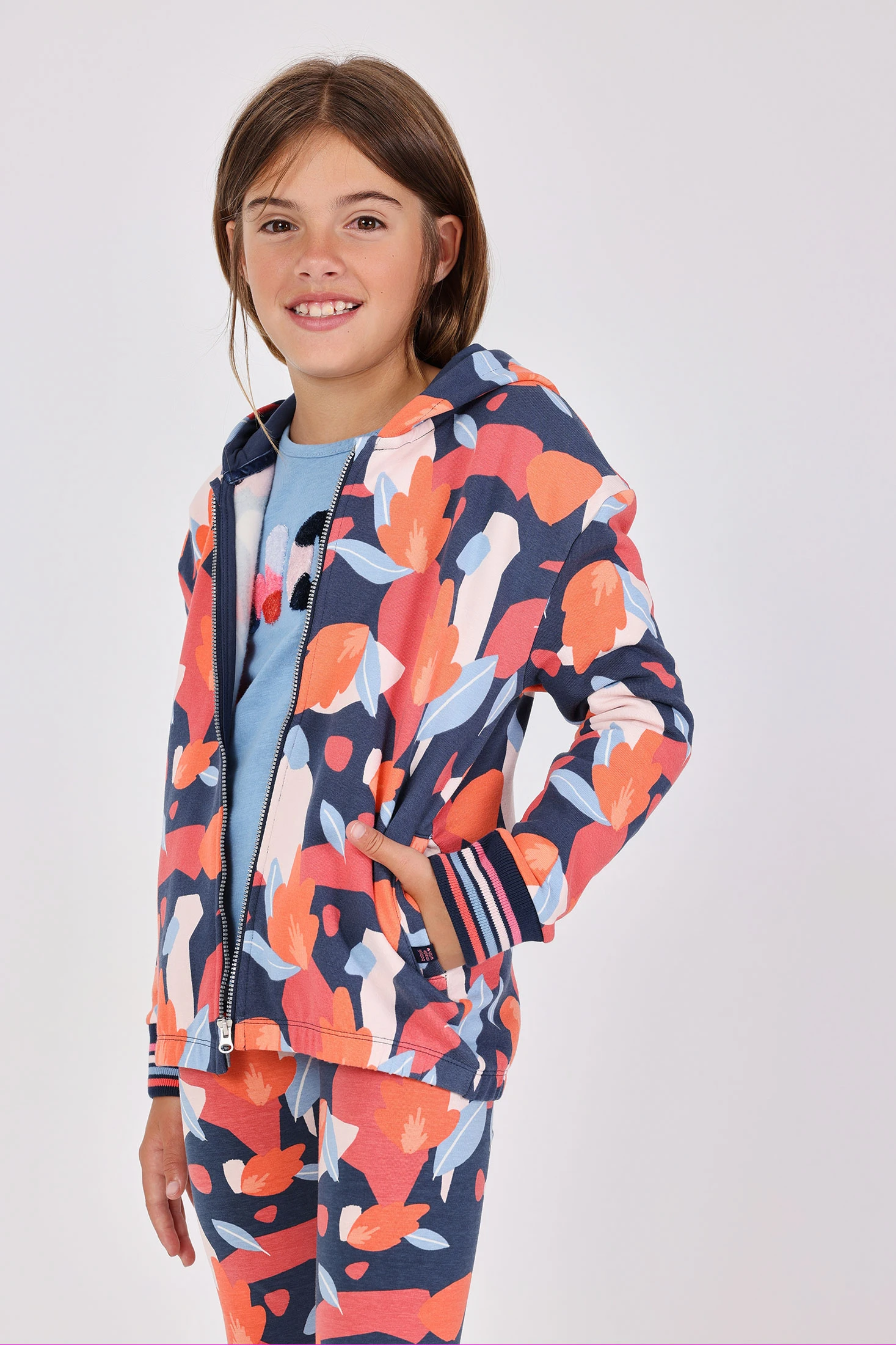 Veste en molleton bleu pour fille avec motif floral offre un style moderne et un confort inégalable. Parfaite pour les saisons d'automne et d'hiver, elle est confectionnée avec des matériaux doux et chauds, idéaux pour garder votre fille au chaud lors des journées les plus fraîches. Avec une coupe ajustée et des manches longues, elle se combine facilement avec des jeans ou des jupes pour créer de nombreux looks. Disponible en tailles de 2 à 14 ans, c'est une option polyvalente qui apporte couleur et originalité à la garde-robe de votre petite.