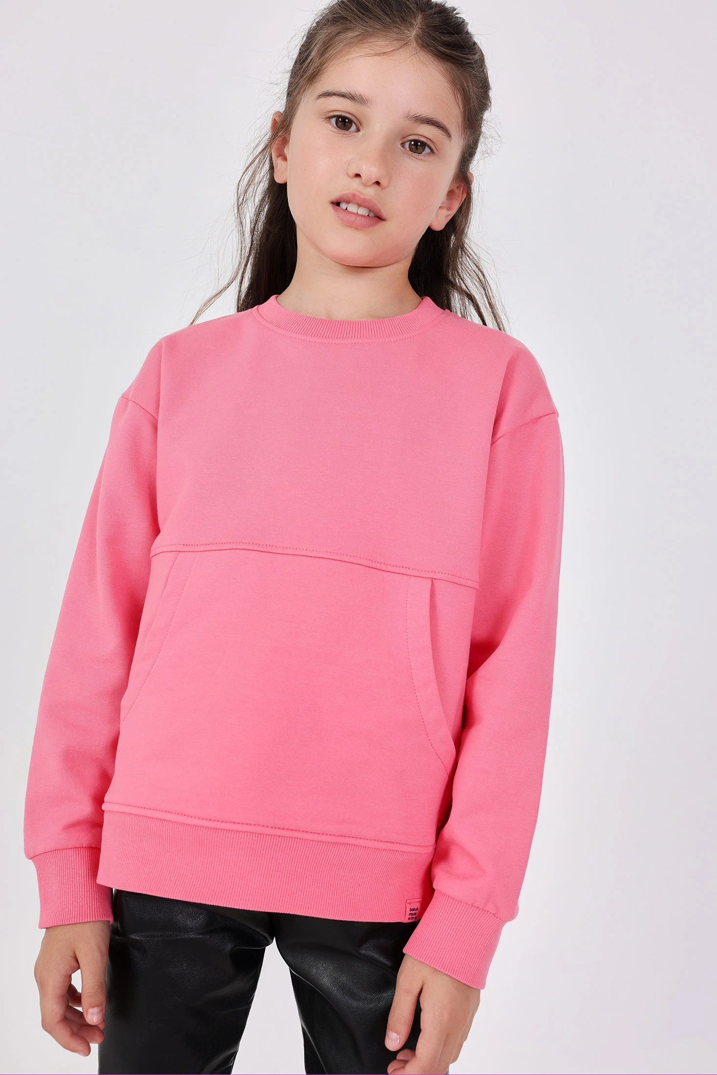 Sweat en molleton pour fille en couleur rose vibrante, parfait pour les saisons d'automne et d'hiver grâce à son tissu doux et confortable. Conçu avec un col rond et des manches longues, il offre chaleur et style pendant les jours froids. Disponible en tailles allant de 2 à 14 ans, ce vêtement se combine facilement avec des jeans ou des jupes pour un look moderne et confortable. Idéal pour les parents qui souhaitent garder leurs filles au chaud et à la mode.