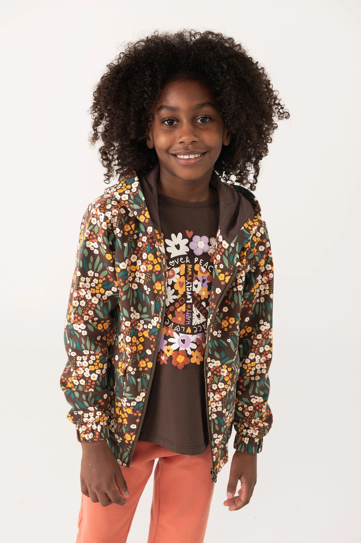 Veste pour fille idéale pour les saisons d'automne et d'hiver, confectionnée en polaire douce qui procure chaleur et confort. Un charmant motif floral multicolore sur un fond marron ajoute une touche unique et joyeuse à la garde-robe enfantine. Équipée d'une capuche confortable, d'une fermeture éclair et de manches longues, elle est parfaite pour les jours froids. Disponible en tailles de 2 à 14 ans, elle se combine facilement avec des jeans ou des leggings pour un look décontracté et amusant.