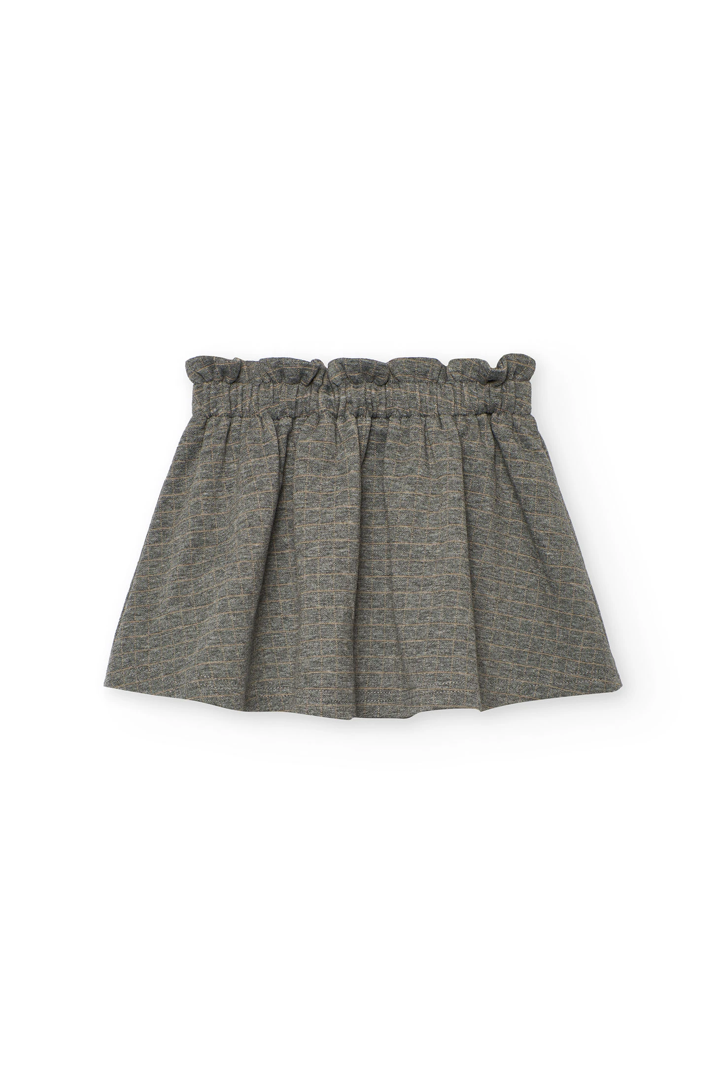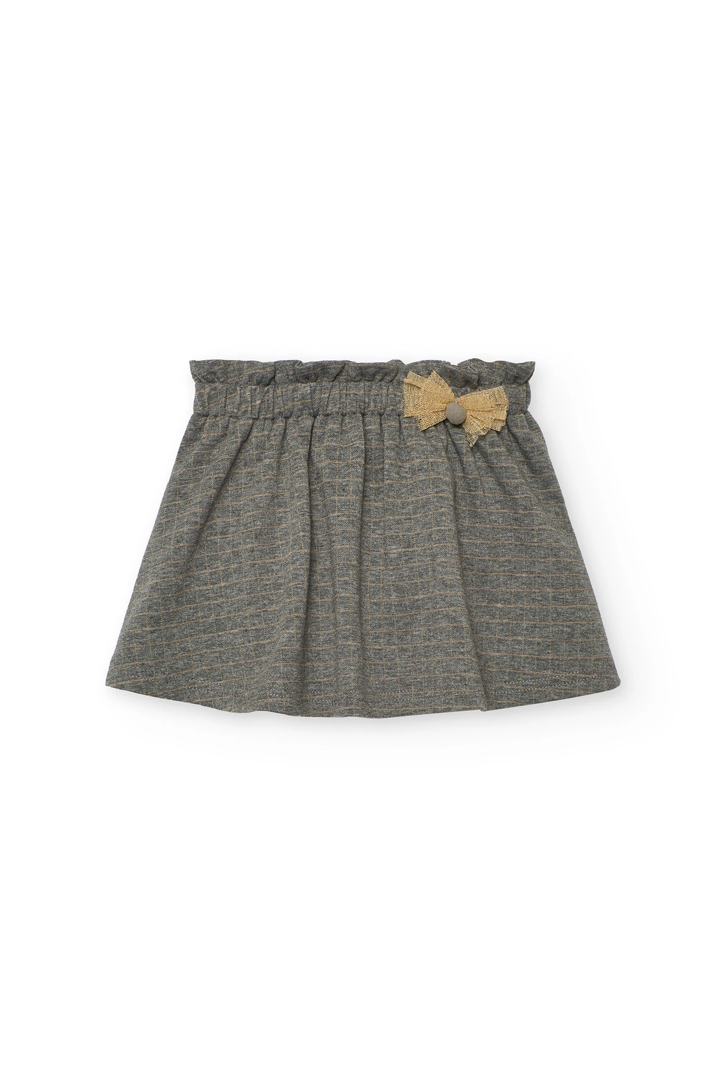 Jupe pour filles, spécialement conçue pour la saison automne-hiver. Confectionnée dans un tissu en maille doux et confortable, elle présente un design attrayant à carreaux en gris. Un détail de nœud avec un ruban doré à la taille ajoute une touche élégante et distinctive. Parfaite aussi bien pour des événements décontractés que formels, elle se marie parfaitement avec des blouses de couleurs neutres. Disponible en tailles de 12 mois à 10 ans, c'est une option polyvalente et élégante pour la garde-robe de toute fille.