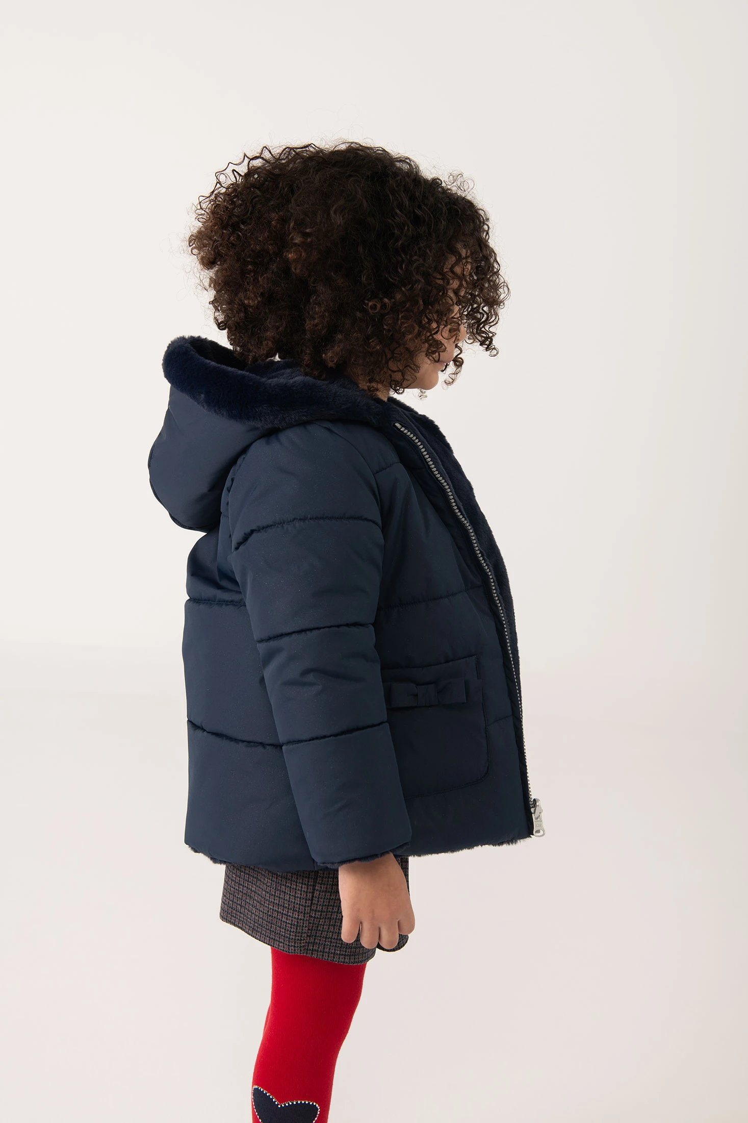 Parka fille en tissu technique bleu marine réversible