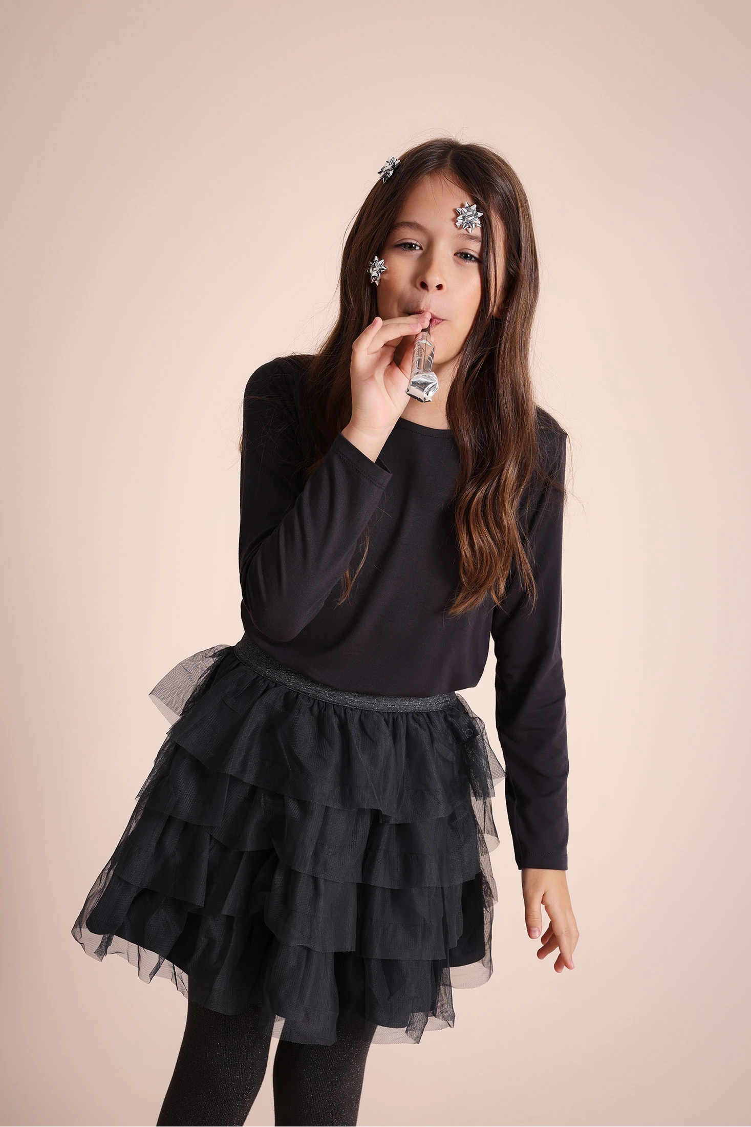 Jupe en tulle à volants de couleur grise, parfaite pour obtenir un look charmant et moderne pour les filles. Les couches de volants offrent un design volumineux et amusant, accentué par la teinte grise élégante. La taille élastique garantit un ajustement confortable, idéal pour diverses activités. Fabriquée en tulle, elle apporte délicatesse et mouvement à l'ensemble. Disponible en tailles de 2 à 14 ans, c'est un vêtement polyvalent qui se combine facilement avec des chemisiers ou des pulls, parfait aussi bien pour des occasions spéciales que pour le quotidien avec une touche de sophistication.