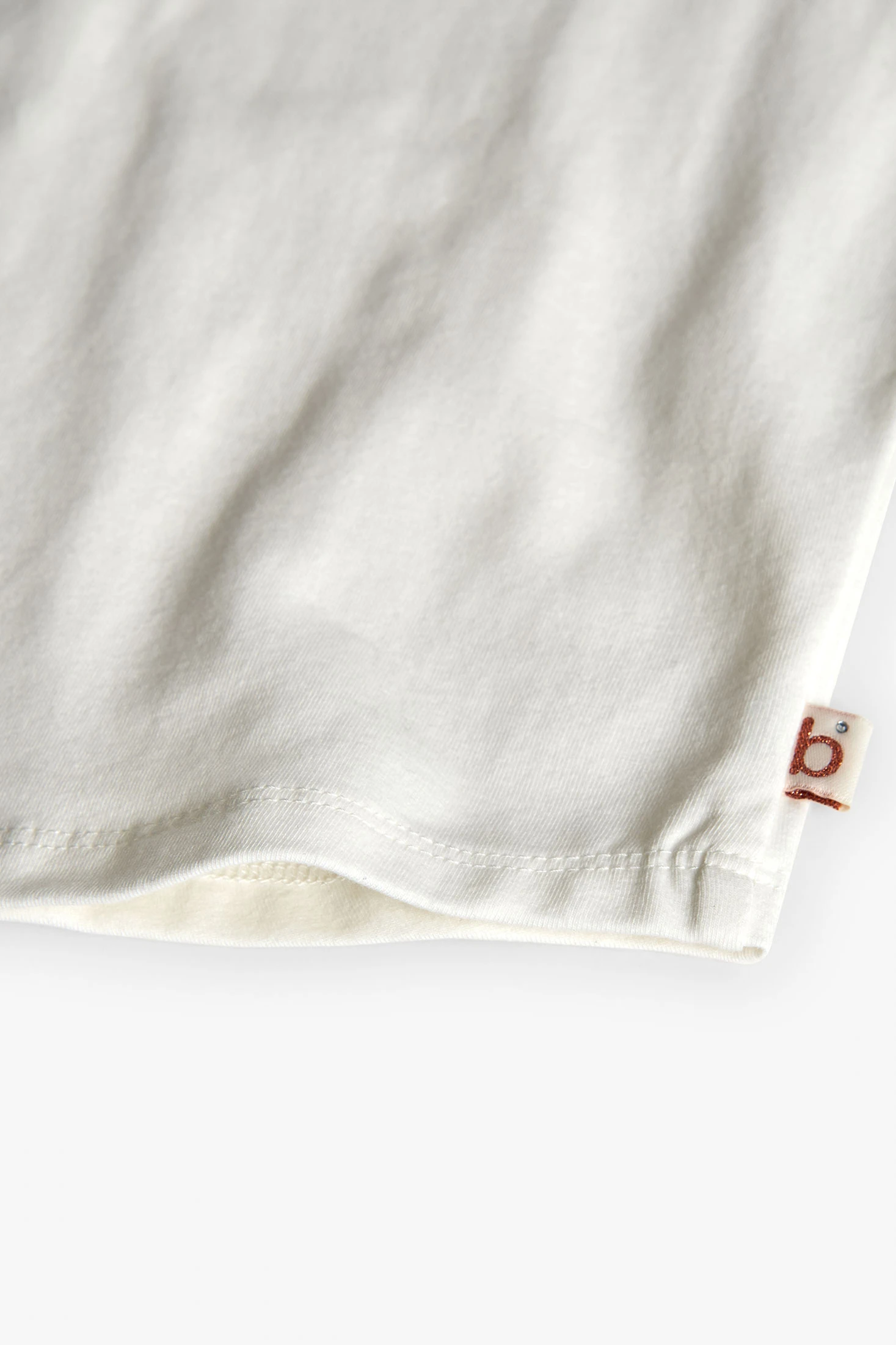 T-shirt en tricot blanc pour fille, conçue pour offrir confort au quotidien grâce à son tissu doux et léger. Disponible en tailles de 2 à 14 ans, c'est un vêtement polyvalent adapté à toutes les saisons. Son design dans une teinte neutre permet de l'associer facilement avec des jupes ou des pantalons, créant des ensembles élégants et modernes. Une option pratique et stylisée pour les parents à la recherche de qualité et de polyvalence dans la garde-robe de leurs filles.