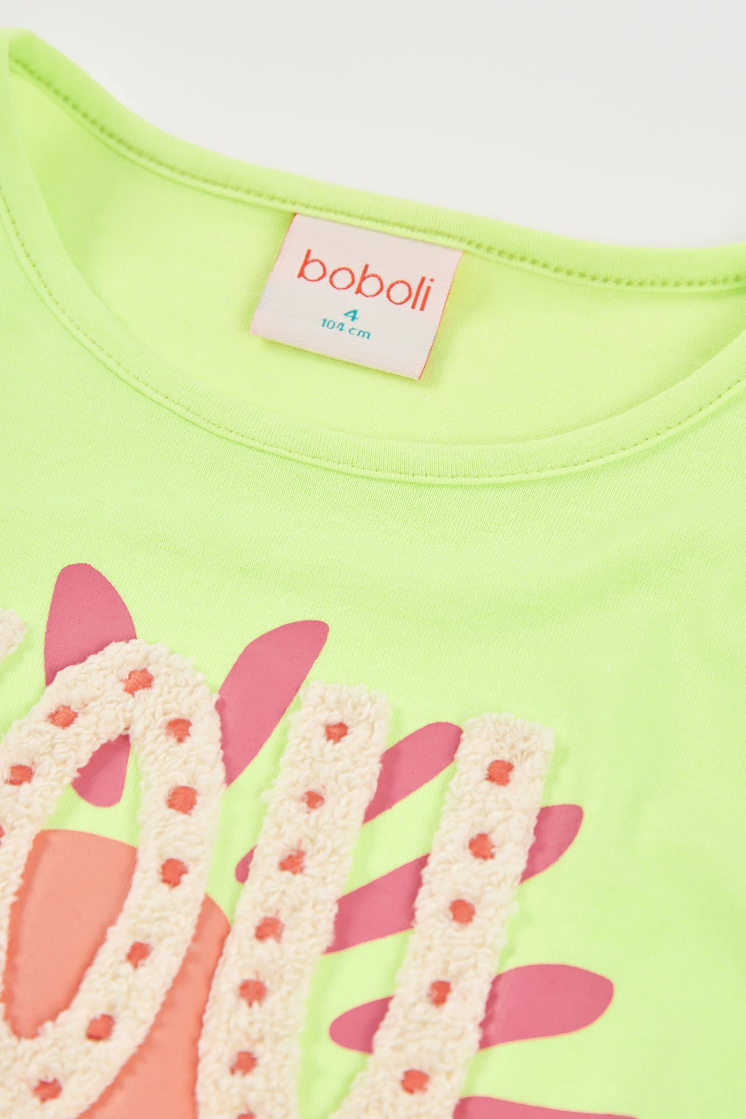 T-shirt en tricot pour fille confectionnée en coton, parfaite pour l'été. De couleur citron vert, elle présente un design avec un imprimé central coloré, idéal pour ajouter une touche joyeuse à n'importe quelle tenue. Avec un col rond et des manches courtes, elle est confortable et fraîche. Disponible en tailles de 12 mois à 10 ans, elle est idéale pour être associée à un jean ou une jupe pour un look décontracté et amusant.