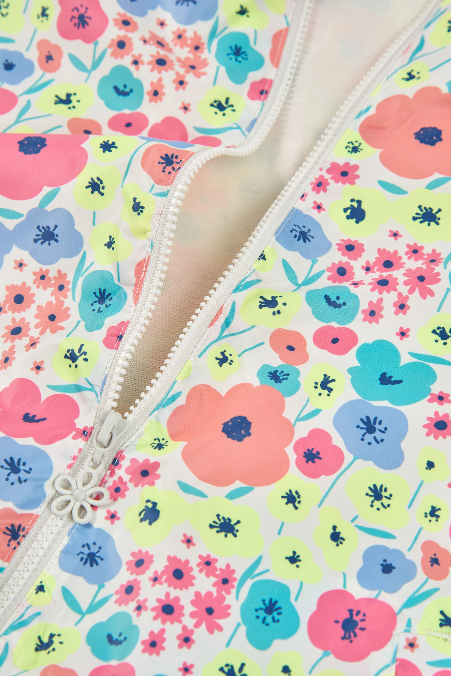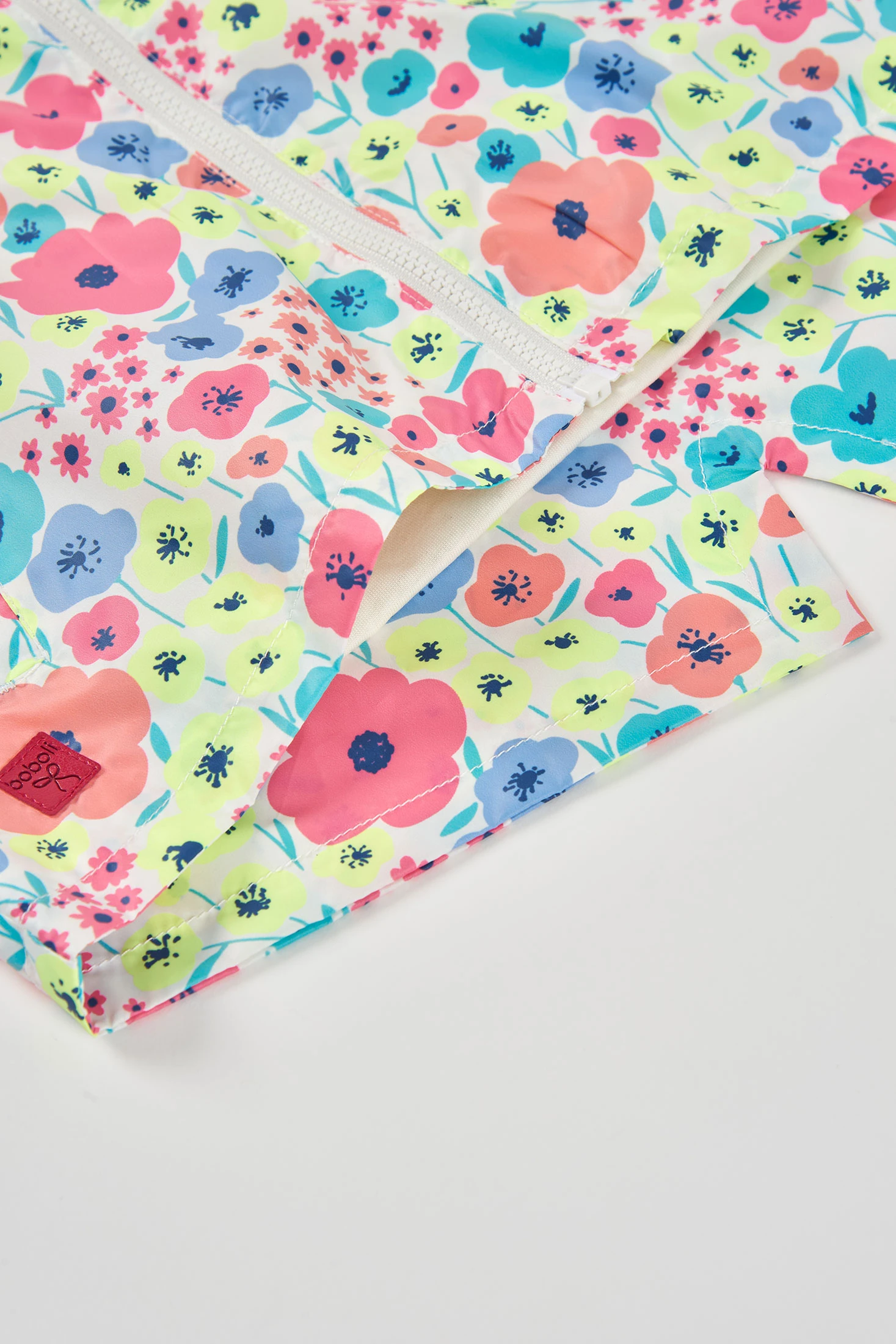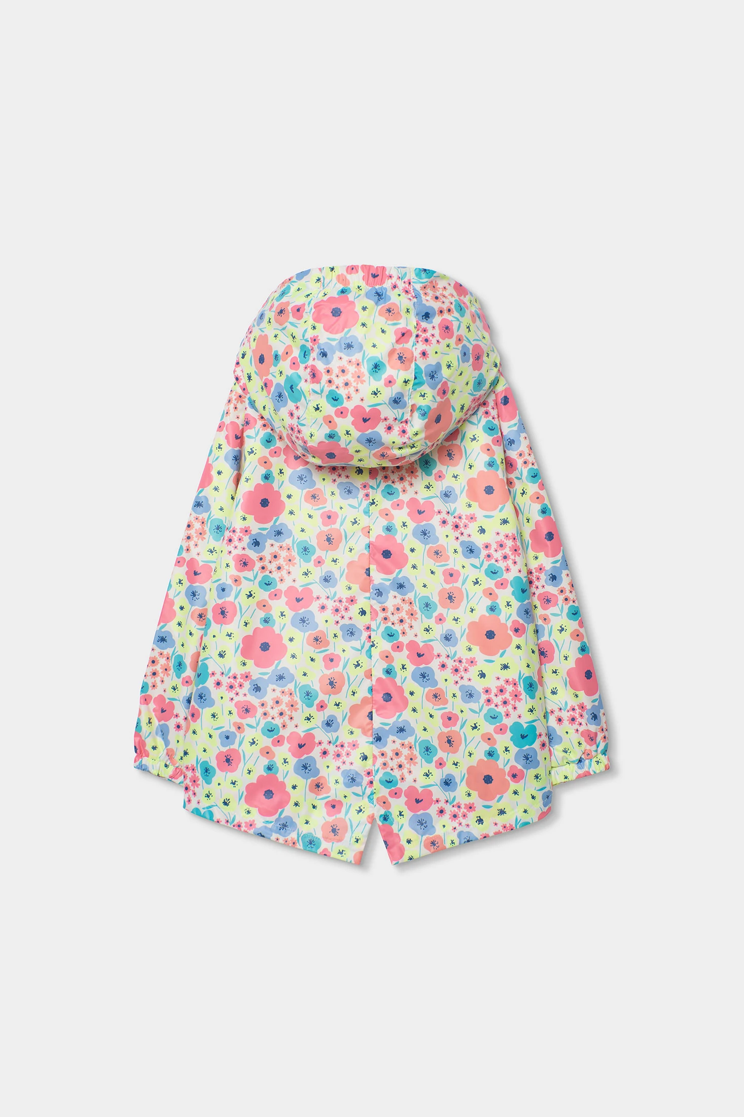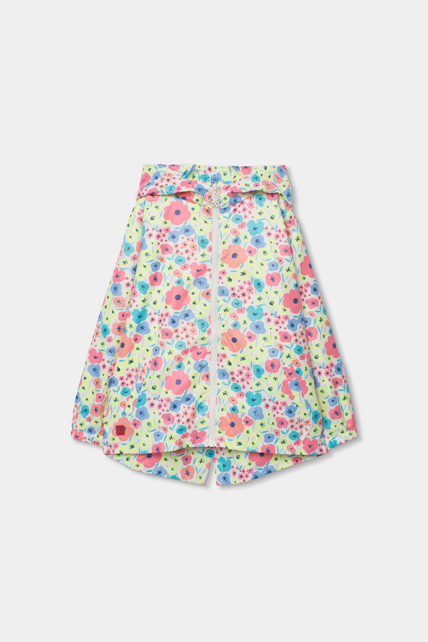 Parka en tissu technique avec imprimé floral multicolore, offrant un aspect joyeux. Le matériau technique garantit résistance et confort, doublée en jersey de couleur perle, tandis que sa capuche ajoute de la fonctionnalité les jours de pluie. Disponible en tailles de 12 mois à 10 ans, elle s'adapte à la croissance. Parfaite pour être assortie avec des pantalons ou des jupes, complétant toute tenue avec son style vibrant.