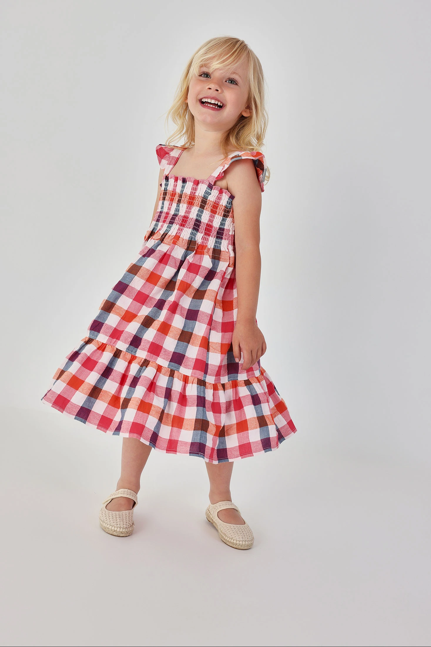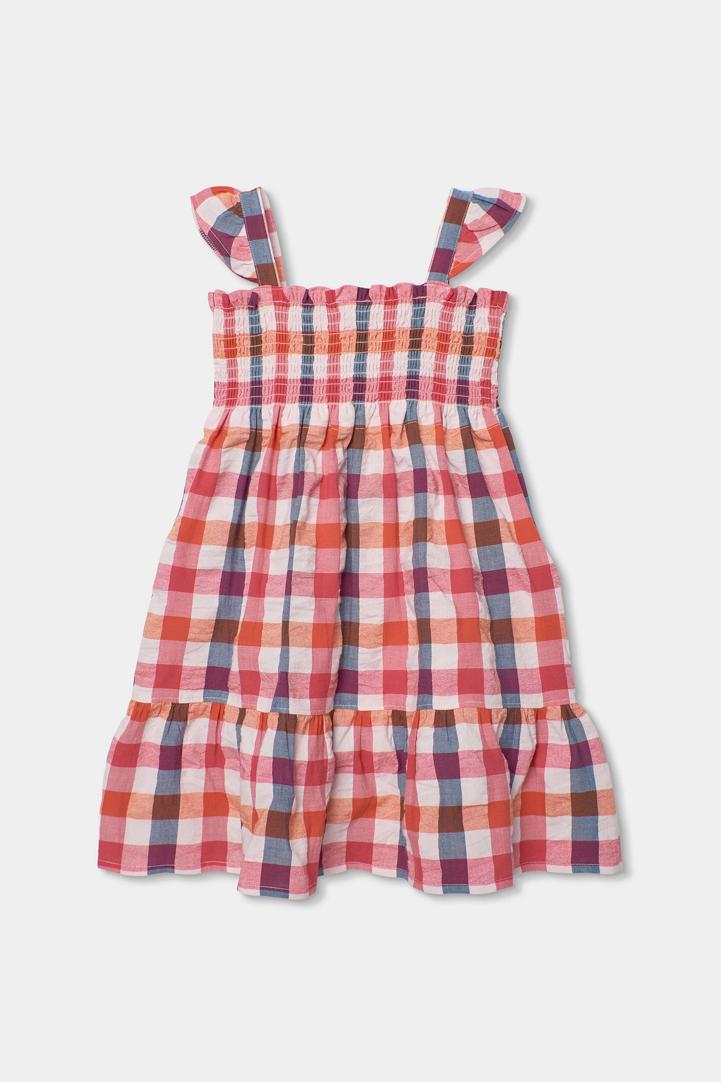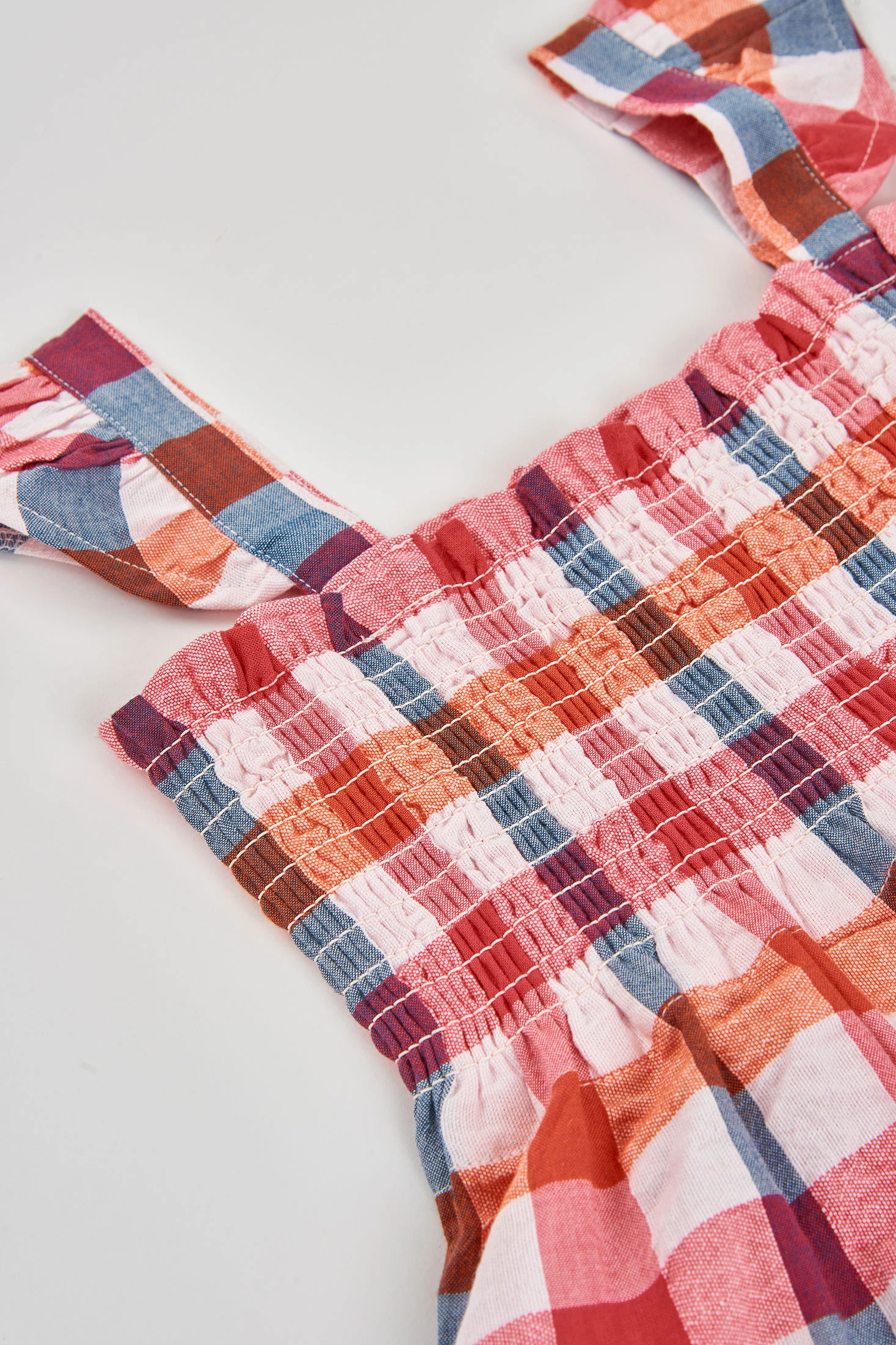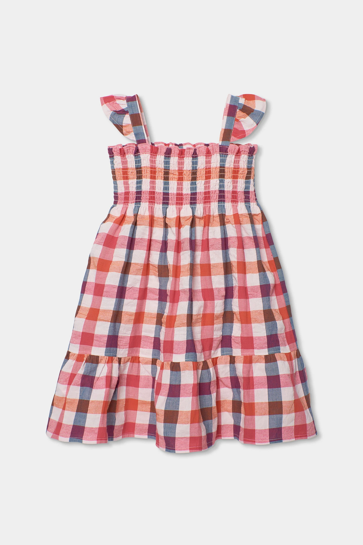 Robe en popeline pour fille qui présente un charmant motif à carreaux dans des tons roses, bleus et oranges, idéal pour la saison printemps-été. Son tissu léger et frais garantit un confort tout au long de la journée. Bretelles ajustables avec de délicats volants ajoutent une touche adorable à l'ensemble. Disponible en tailles allant de 12 mois à 14 ans. Vêtement polyvalent qui peut être facilement combiné avec d'autres pièces pour créer un look décontracté ou plus élégant.