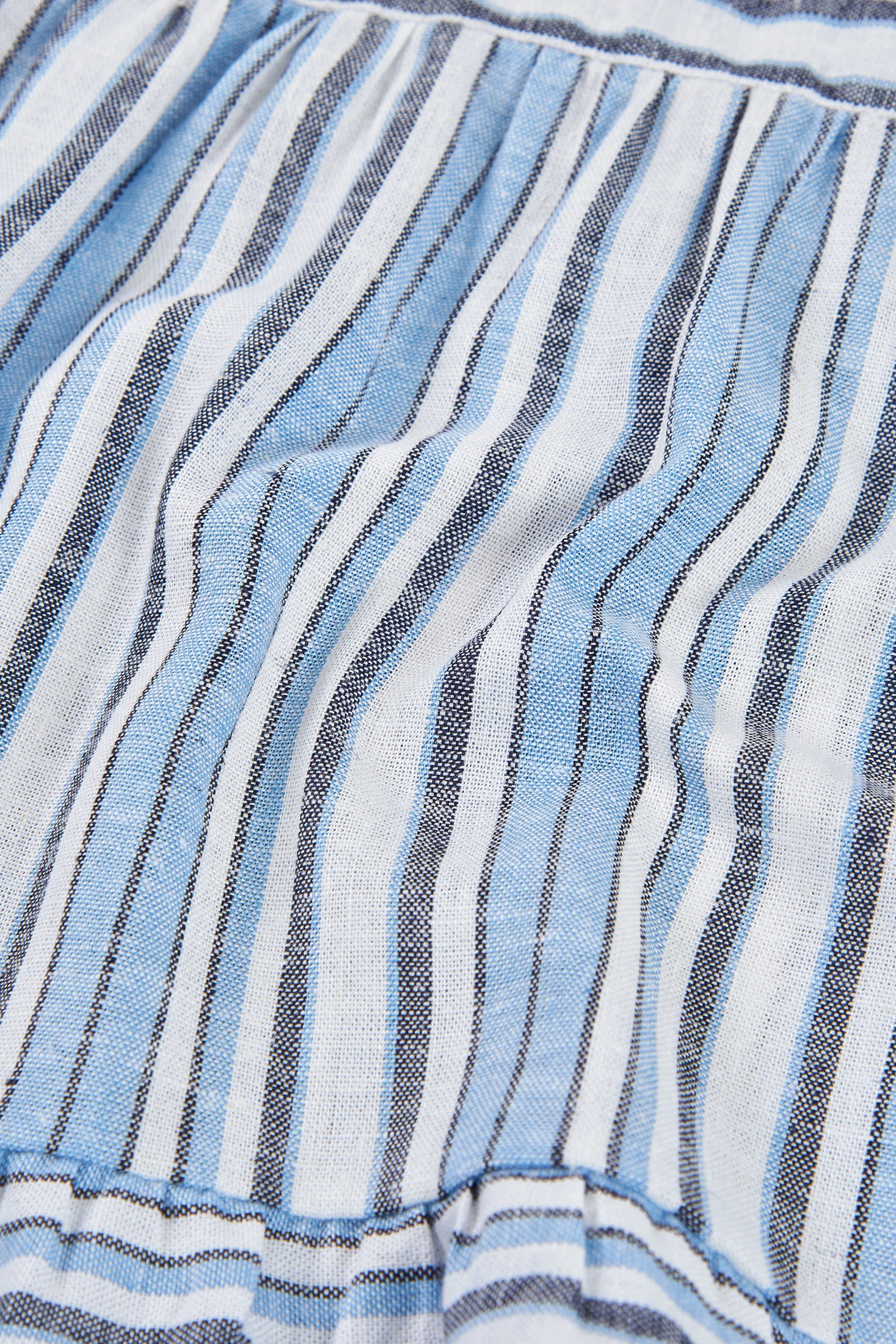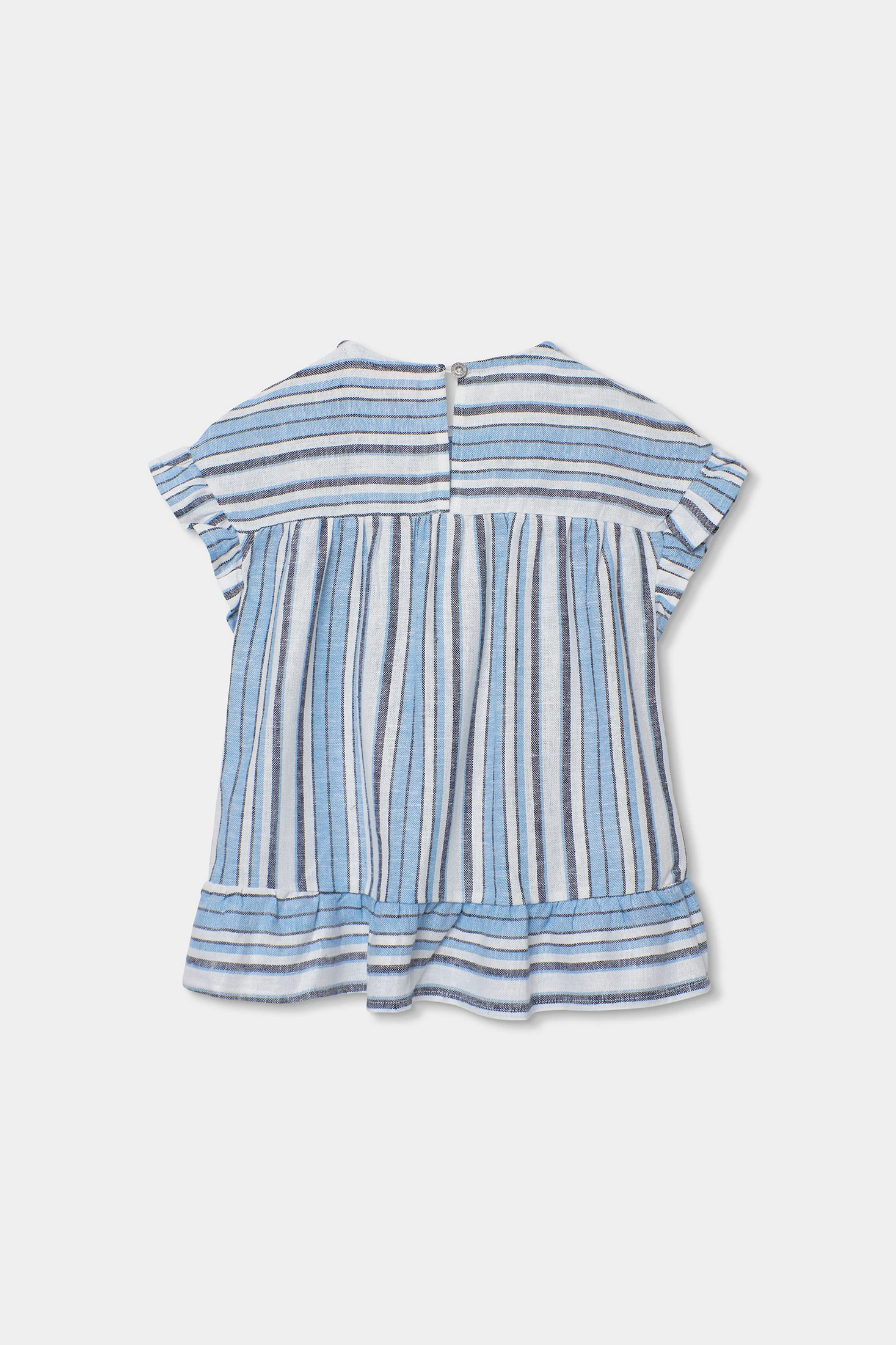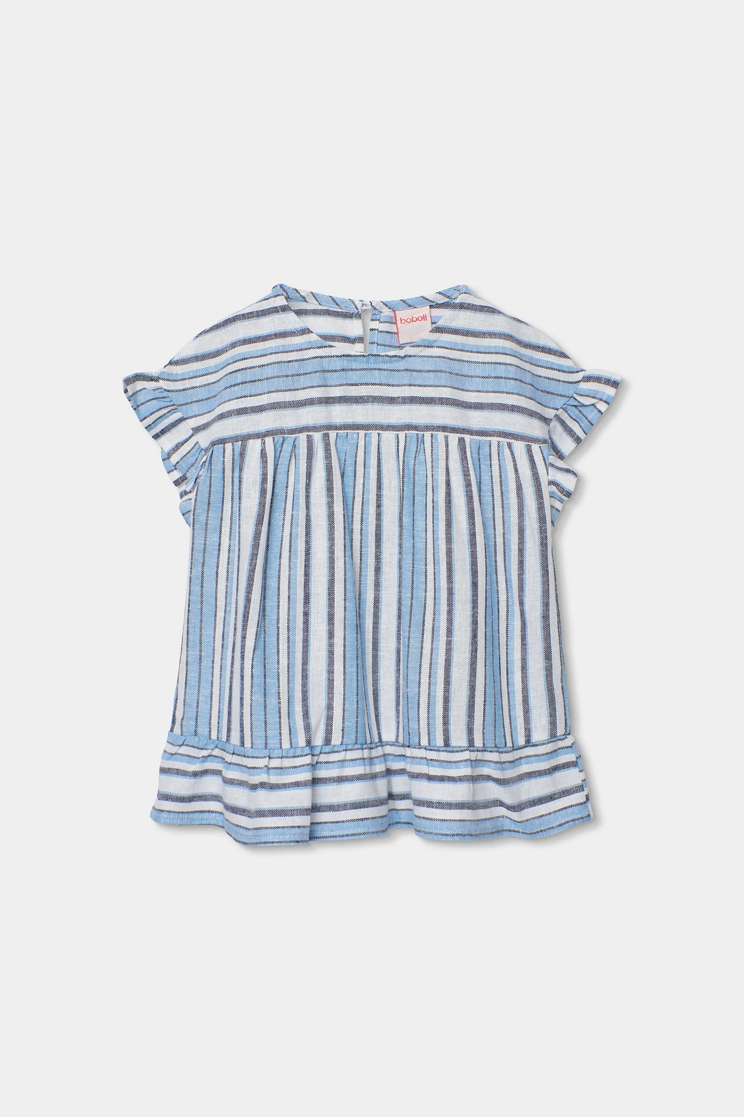 Tunique en lin pour fille qui allie style et fonctionnalité, idéale pour l'été. Elle présente un design rayé en tons de bleu et blanc, avec une coupe ample qui garantit le confort. Les manches ont un délicat volant qui ajoute une touche élégante. Disponible en tailles allant de 12 mois à 14 ans, elle s'adapte à divers âges. Elle est fabriquée à partir d'un matériau léger, parfait pour rester au frais lors des journées chaudes. Idéale pour être assortie avec des shorts ou des leggings pour un look décontracté et frais.