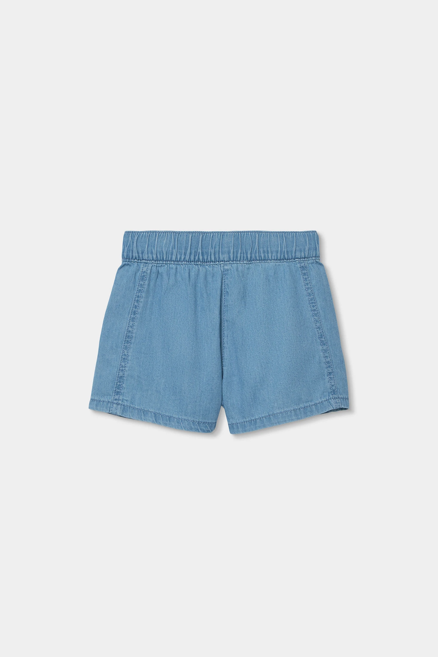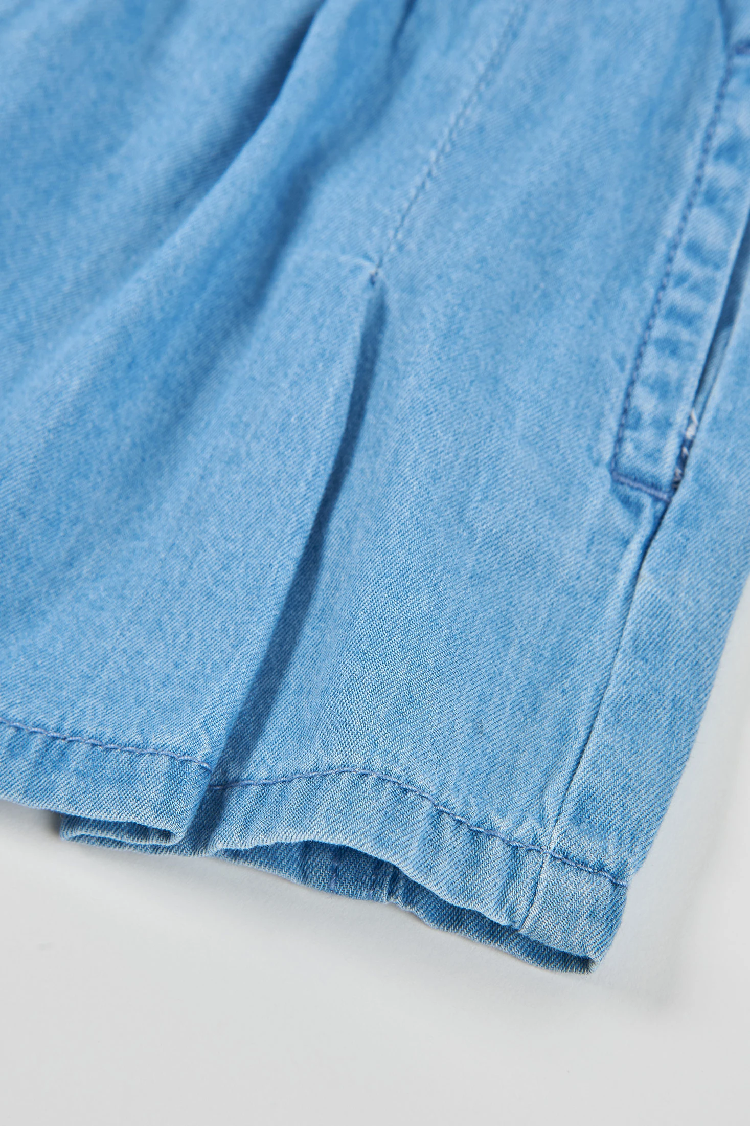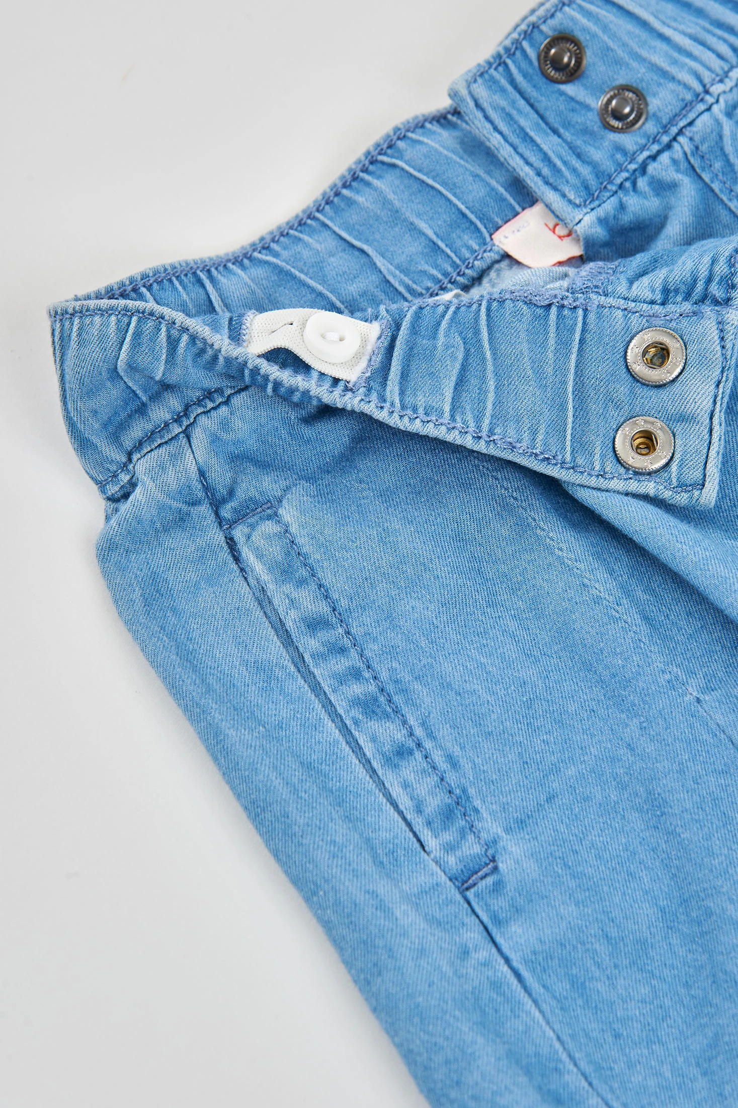 Jupe-short en denim de couleur bleu clair, parfaite pour les filles actives. Fabriquée en denim, elle offre confort et résistance pour le quotidien. Son design présente une taille élastique et un double bouton frontal, garantissant un ajustement sûr et facile à enfiler. Idéale pour les âges de 12 mois à 14 ans, elle se combine facilement avec des t-shirts ou des chemisiers pour un look décontracté et chic. Vêtement polyvalent indispensable dans la garde-robe enfantine.