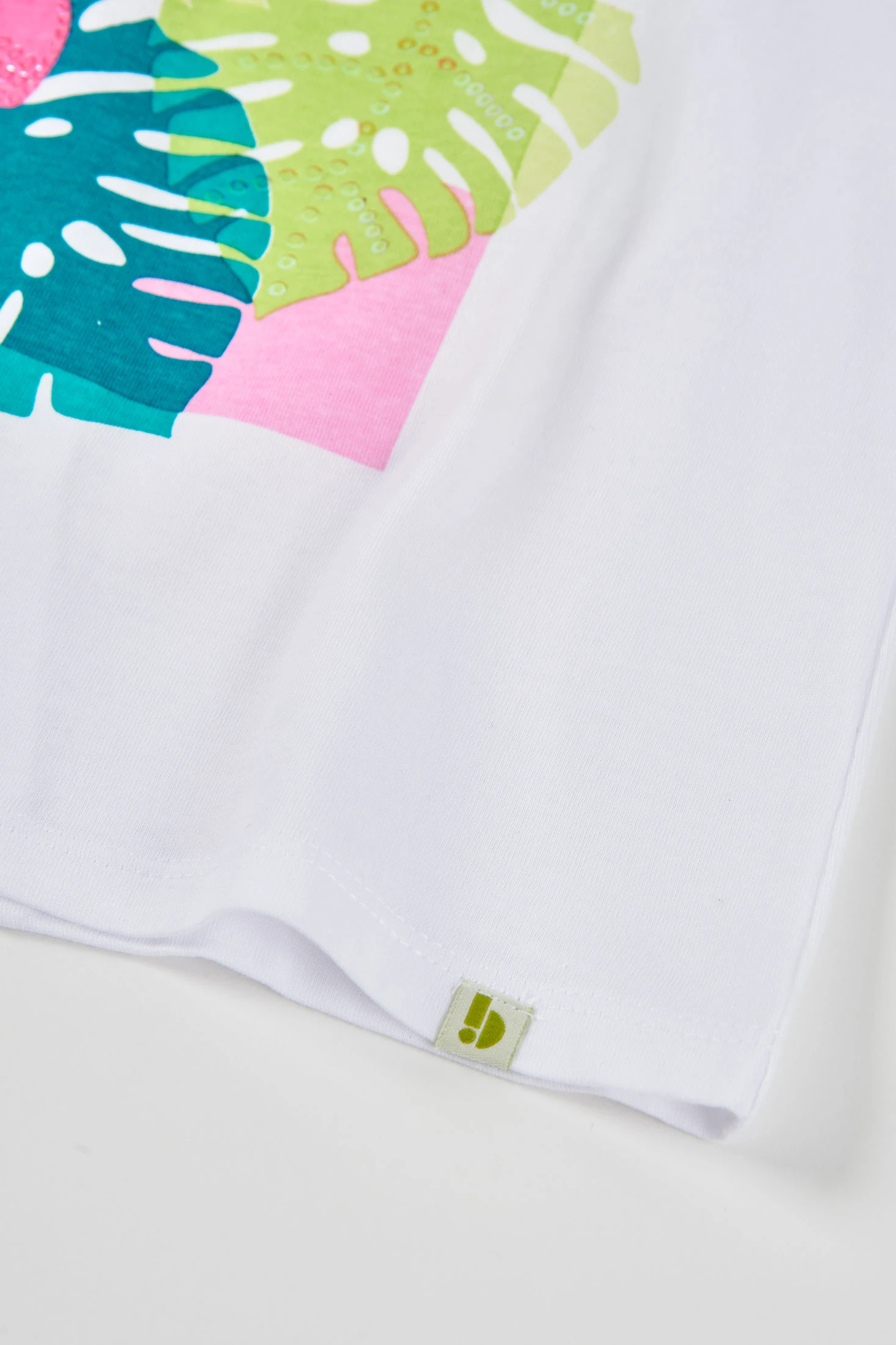 T-shirt à manches longues pour fille en coton blanc. Elle présente un imprimé vibrant de feuilles et de fleurs dans des tons roses et verts, ajoutant une touche amusante. Confortable et douce, elle est parfaite pour le quotidien. Les tailles disponibles vont de 2 ans à 14 ans. C'est un vêtement polyvalent qui peut être assorti à diverses tenues, ajoutant style et couleur à la garde-robe. Idéale pour maintenir la chaleur et le confort lors des journées plus fraîches.