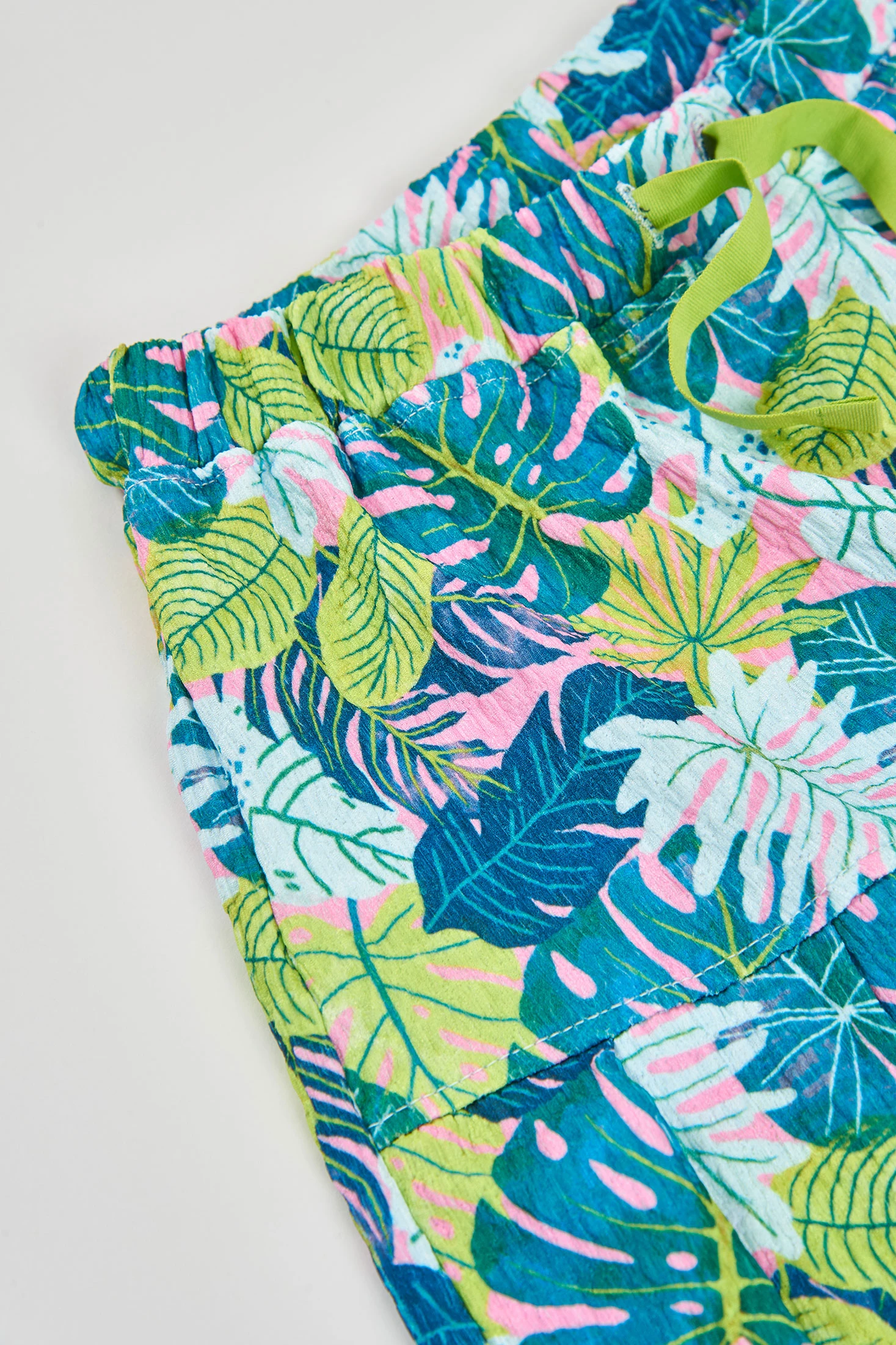 Jupe en maille fantaisie parfaite pour les filles, alliant confort et style pour les saisons chaudes. Son design vibrant présente un imprimé tropical dans des tons de vert, bleu et rose, apportant une touche fraîche et joyeuse. Confectionnée en tissu de maille, elle garantit flexibilité et confort. Taille élastique assurant un ajustement parfait. Disponible en tailles de 2 à 14 ans, elle est idéale pour être associée à des t-shirts unis et des vestes légères, s'adaptant à différentes occasions. Une option polyvalente et colorée pour la garde-robe des enfants.