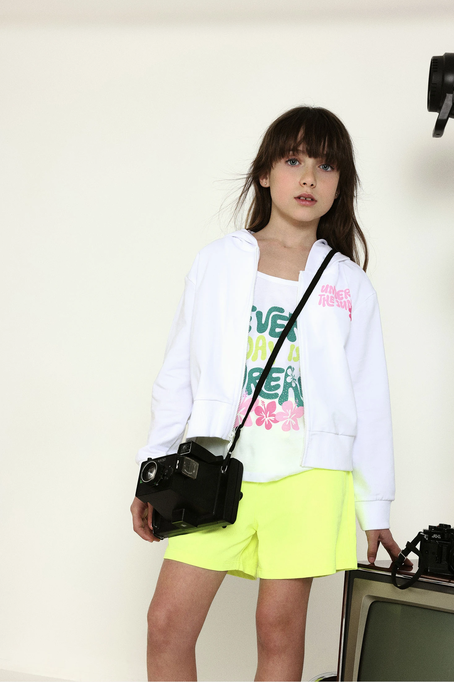 Short en molleton vert néon, vêtement confortable et polyvalent pour les filles. Son design comprend une taille élastique avec un noeud décoratif, offrant un ajustement sûr et confortable. Fait de tissu doux, il est idéal pour le jeu et l'usage quotidien. Sa couleur vibrante apporte une touche joyeuse à la garde-robe. Disponible en tailles de 2 ans à 14 ans, il est parfait pour être assorti avec des t-shirts et des sweat-shirts par temps chaud. Son style simple et fonctionnel en fait un choix pratique pour toute occasion décontractée.