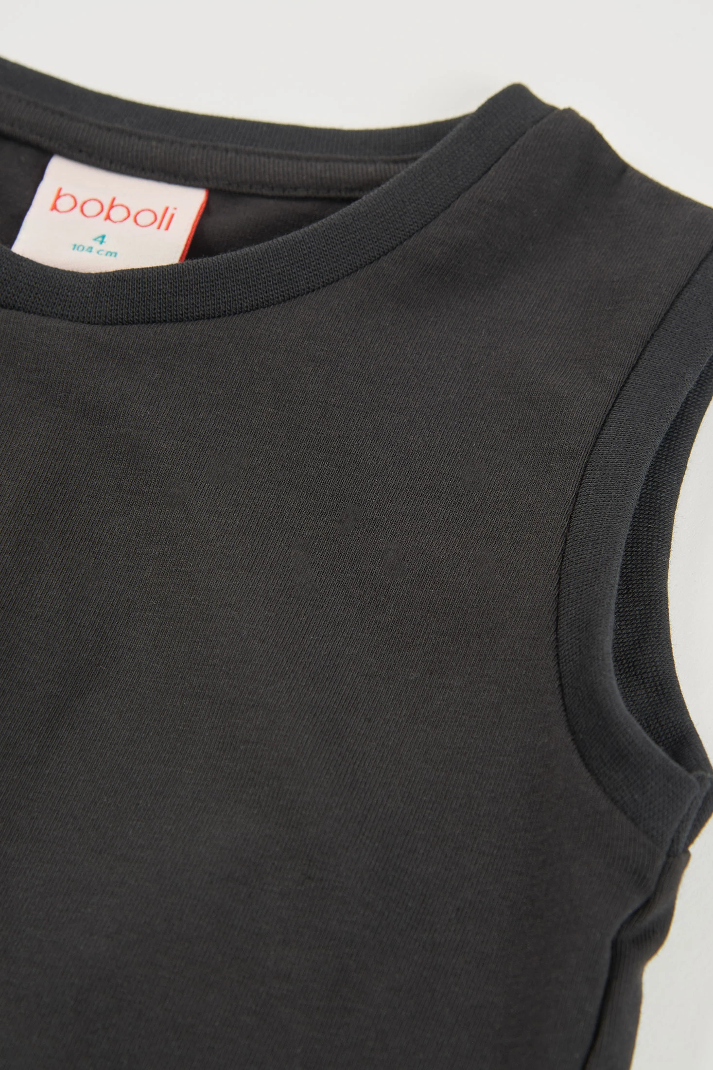 T-shirt noire pour fille, fabriquée en coton offrant confort et polyvalence dans les looks. Le design est simple, sans imprimés et avec une côte noire et une rayure vert néon à la taille. Idéale pour combiner avec différents styles. Disponible en tailles de 2 à 14 ans, elle s'adapte à différentes étapes de croissance. Sa coupe sans manches et son col rond la rendent parfaite pour être portée lors de journées plus fraîches avec une veste ou par temps chaud. Un vêtement basique indispensable dans la garde-robe de toute fille, adapté à toutes les saisons.