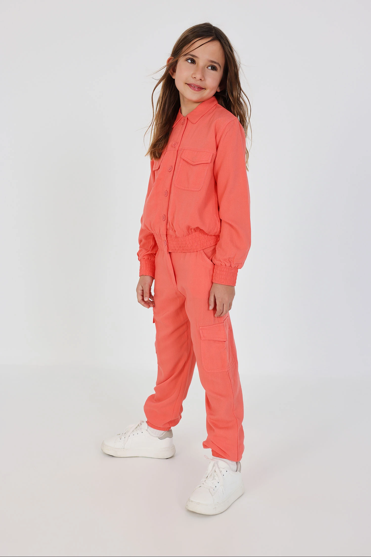Pantalon en viscose couleur fraise pour fille. Le pantalon a une coupe style cargo avec des poches sur les côtés et un poignet en bas. Confectionné avec des matériaux doux, il offre un confort tout au long de la journée. Les tailles disponibles vont de 2 ans à 14 ans, assurant un ajustement adéquat pour différentes étapes de croissance. Une option polyvalente et attrayante pour tout style décontracté.