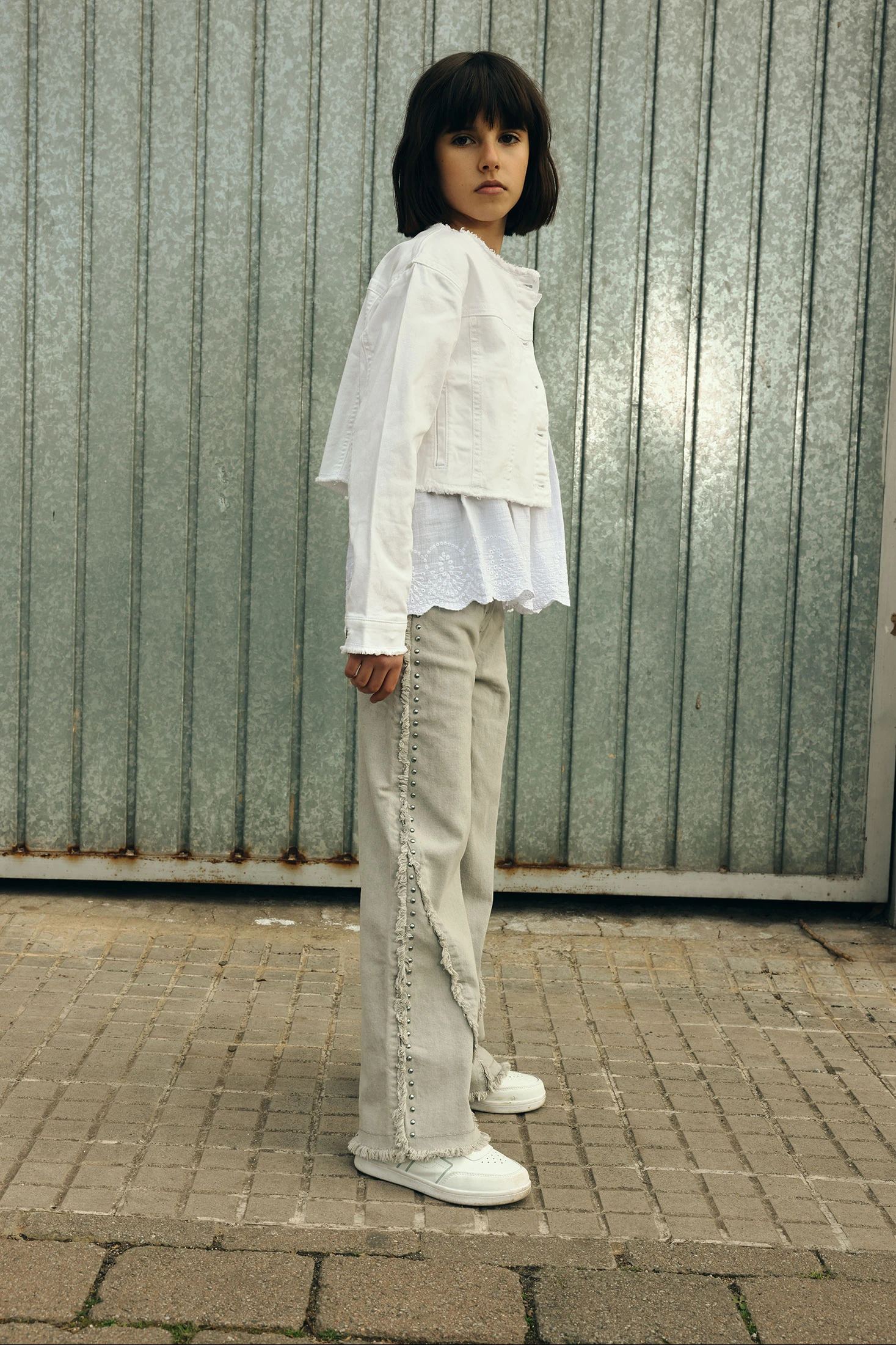 Jean gris en denim pour fille, idéal pour un look moderne et polyvalent. Confectionné dans un matériau de haute qualité, il offre durabilité et confort. Son design se distingue par des détails de rivets métalliques décoratifs et une finition effilochée aux bords, parfait pour un style décontracté chic. Disponible en tailles allant de 2 ans à 14 ans, il s'adapte à différentes tranches d'âge. Sa couleur neutre facilite les associations avec des t-shirts et pulls de styles variés. C'est une option pratique et stylée pour un usage quotidien.