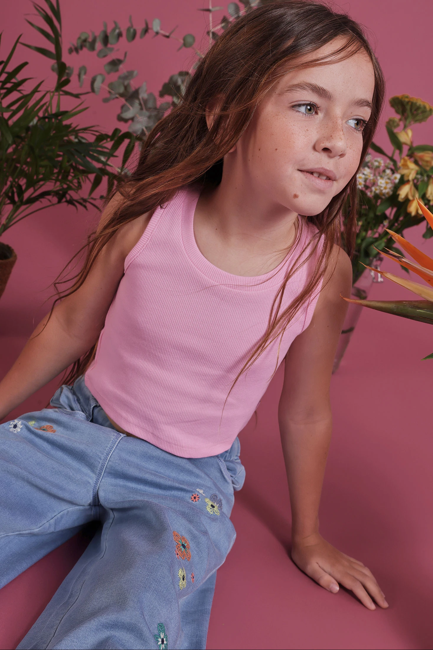 Débardeur fille coton rose