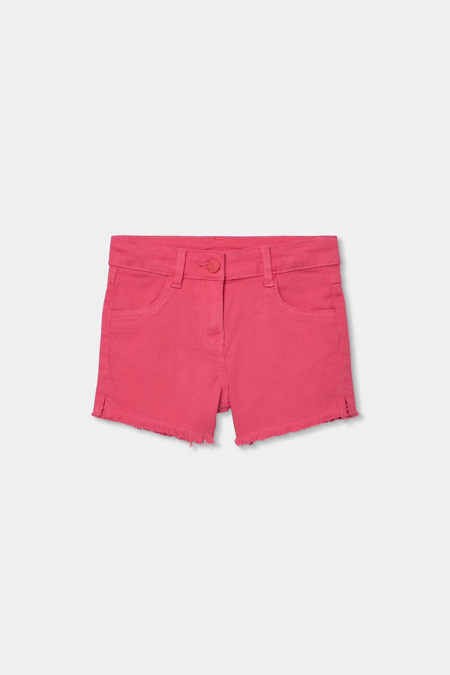 Short en sergé extensible pour fille, dans une couleur fraise vive, idéal pour l'été. Sa matière extensible garantit confort et liberté de mouvement, parfait pour le jeu quotidien. Avec un design simple, il est polyvalent et facile à assortir avec des t-shirts ou des blouses. Disponible dans les tailles allant de 12 mois à 14 ans, il s'adapte à la croissance de votre petite. Les détails effilochés sur les bords lui donnent une touche moderne et décontractée. Un vêtement indispensable pour les journées chaudes qui assure style et confort.
