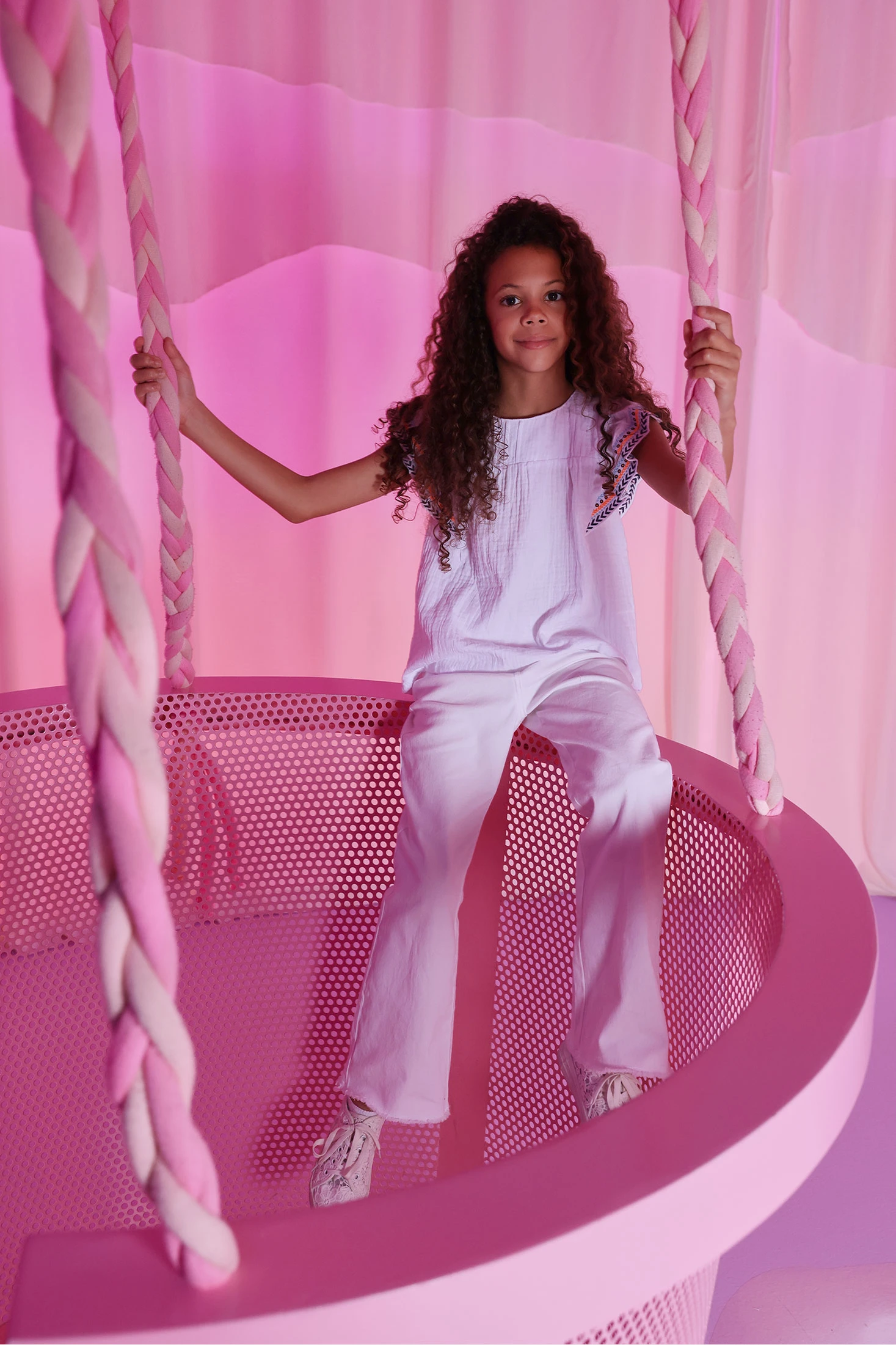 Pantalon en sergé extensible de couleur blanche pour fille, idéal pour le quotidien, offrant un style simple et élégant. Confectionnés dans une matière douce et confortable qui permet une liberté de mouvement. Leur design uni les rend facilement combinables avec différents styles et couleurs. Disponibles en tailles de 12 mois à 14 ans, ils s'adaptent à la croissance de la fille. Parfaits pour des occasions décontractées ou plus formelles, avec un ajustement qui garantit le confort tout au long de la journée.