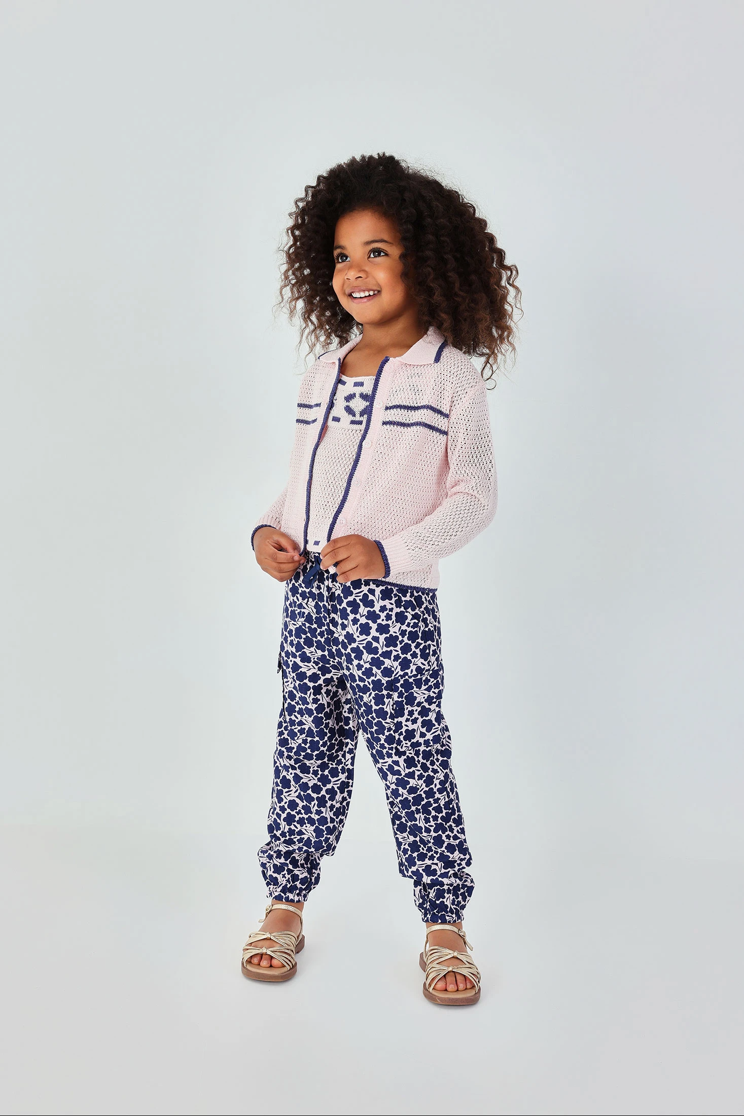 Pantalon imprimé à fleurs pour fille, un vêtement charmant et fonctionnel. Son motif floral en tons bleus le rend parfait pour ajouter une touche de nature à la garde-robe. Confectionné dans une matière douce, il offre un confort pour un usage quotidien. Disponible en tailles de 12 mois à 10 ans, il s'adapte à la croissance de l'enfant. La taille ajustable avec un noeud augmente sa praticité. Associez-le à un t-shirt uni pour un look équilibré et polyvalent. Idéal pour toutes les saisons, c'est une option élégante et confortable pour les petites.