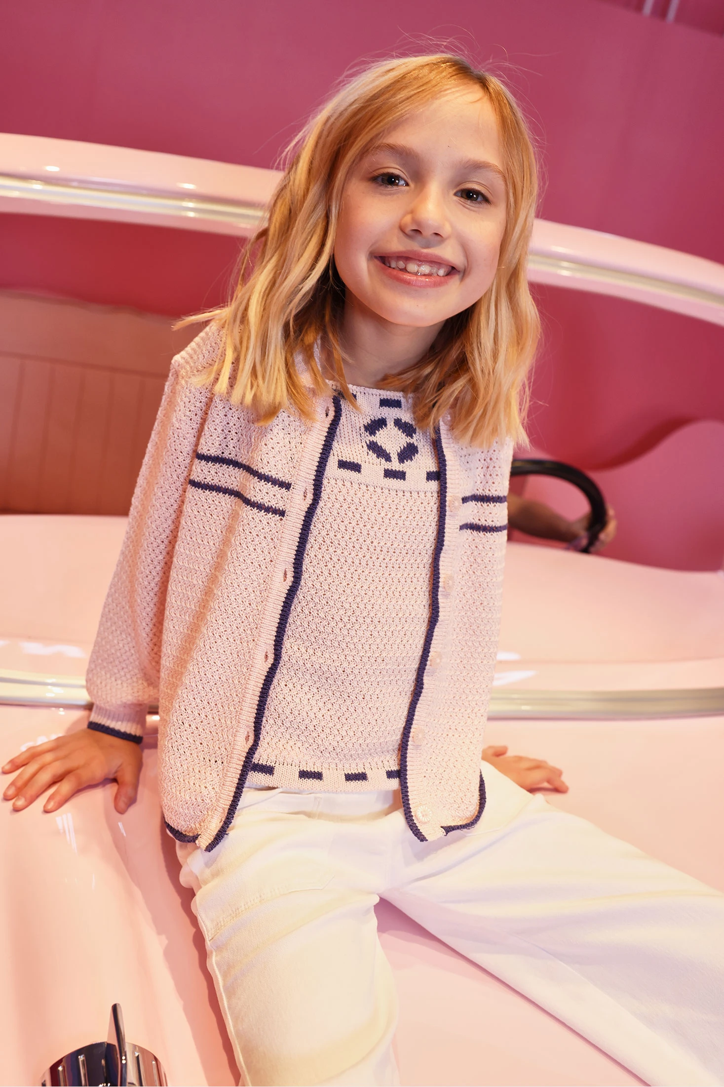 Veste en maille rose pour fille