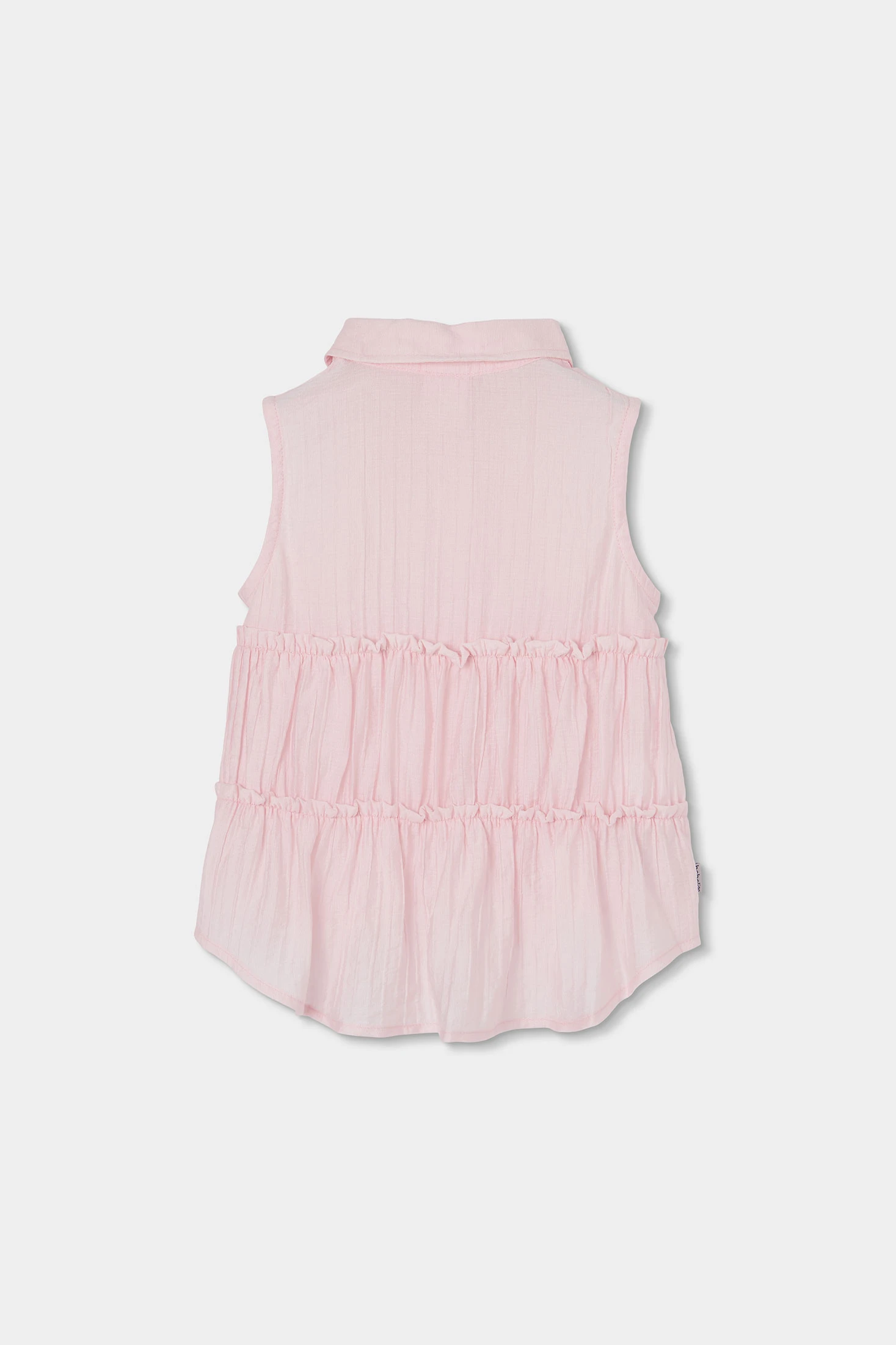 Débardeur pour fille idéal pour les journées d'été. Confectionné dans un tissu léger et fluide, il offre confort et fraîcheur. Son design en rose doux présente un col à chemise et des boutons sur le devant, ajoutant une touche d'élégance. Disponible en tailles de 12 mois à 10 ans, c'est un vêtement polyvalent qui se combine facilement avec des shorts ou des jupes pour un look chic et confortable pendant la saison chaude.