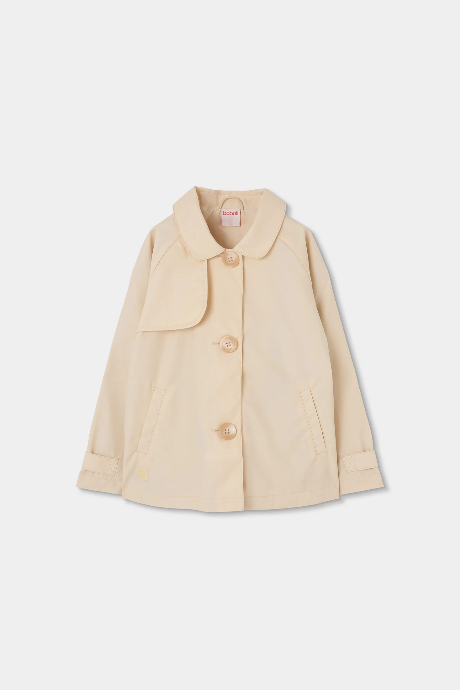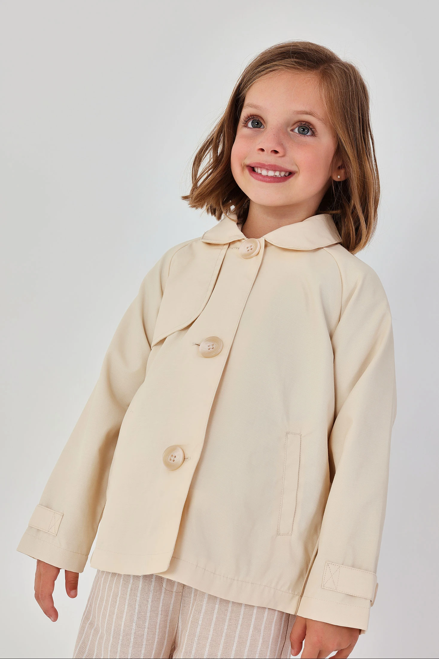 Trench en tissu technique de couleur beige pour fille, idéal pour la saison printanière. Confectionné dans un matériau résistant et chaud, il présente un design moderne avec de gros boutons et des poches pratiques. Disponible en tailles allant de 12 mois à 10 ans, il s'adapte facilement à la croissance de l'enfant. Sa couleur beige neutre le rend polyvalent pour s'associer à différents styles et tenues, offrant confort et élégance lors des journées plus fraîches.
