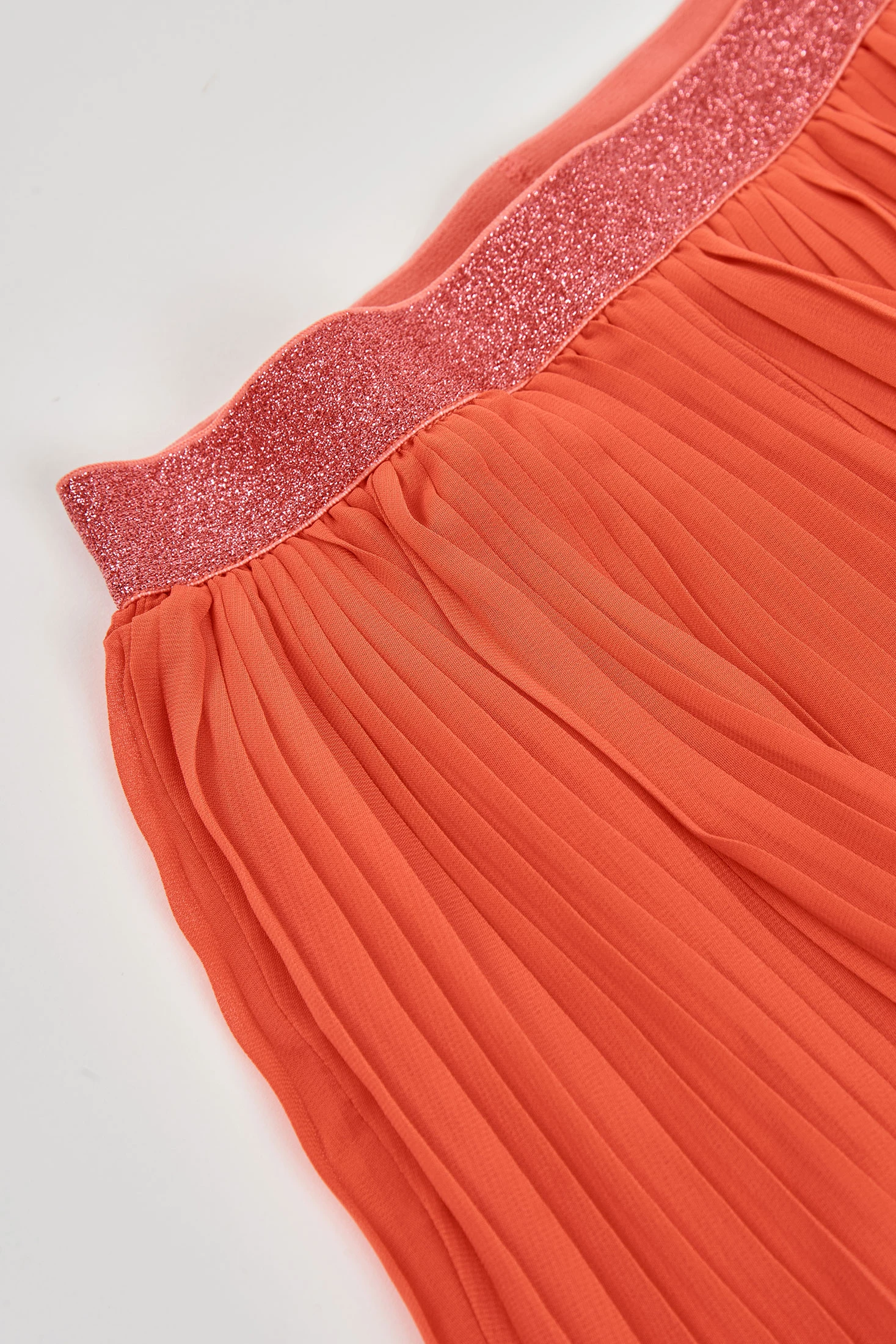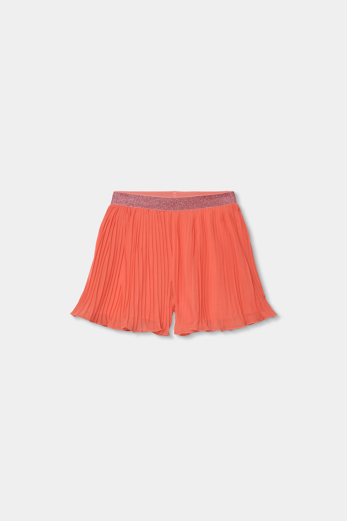 Bermudas en mousseline plissée de couleur corail rouge, idéales pour un look élégant et frais. Le tissu léger et fluide est parfait pour l'été. La taille élastique avec finition brillante assure confort et style. Disponibles en tailles de 12 mois à 10 ans, elles s'adaptent parfaitement à chaque étape de croissance. Associez-les à des blouses légères pour une tenue sophistiquée lors d'événements spéciaux.