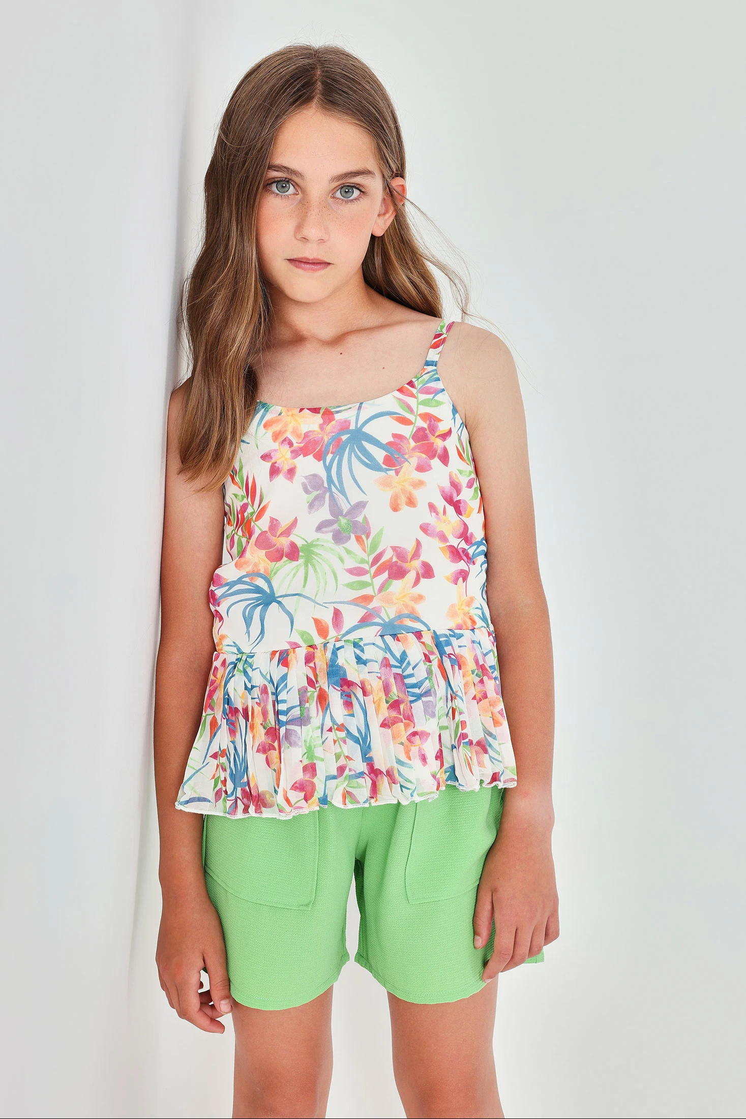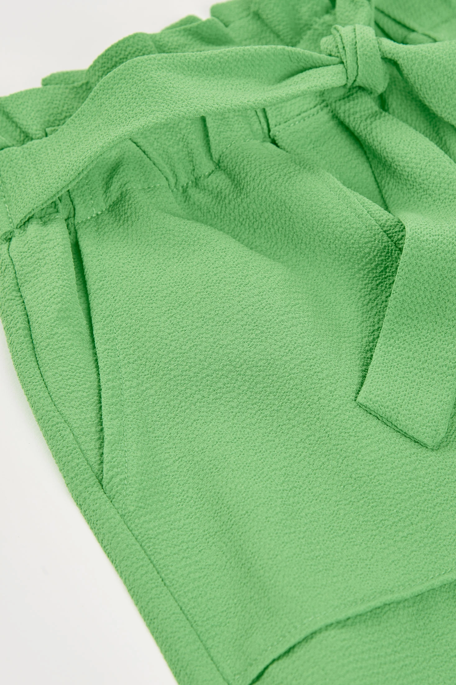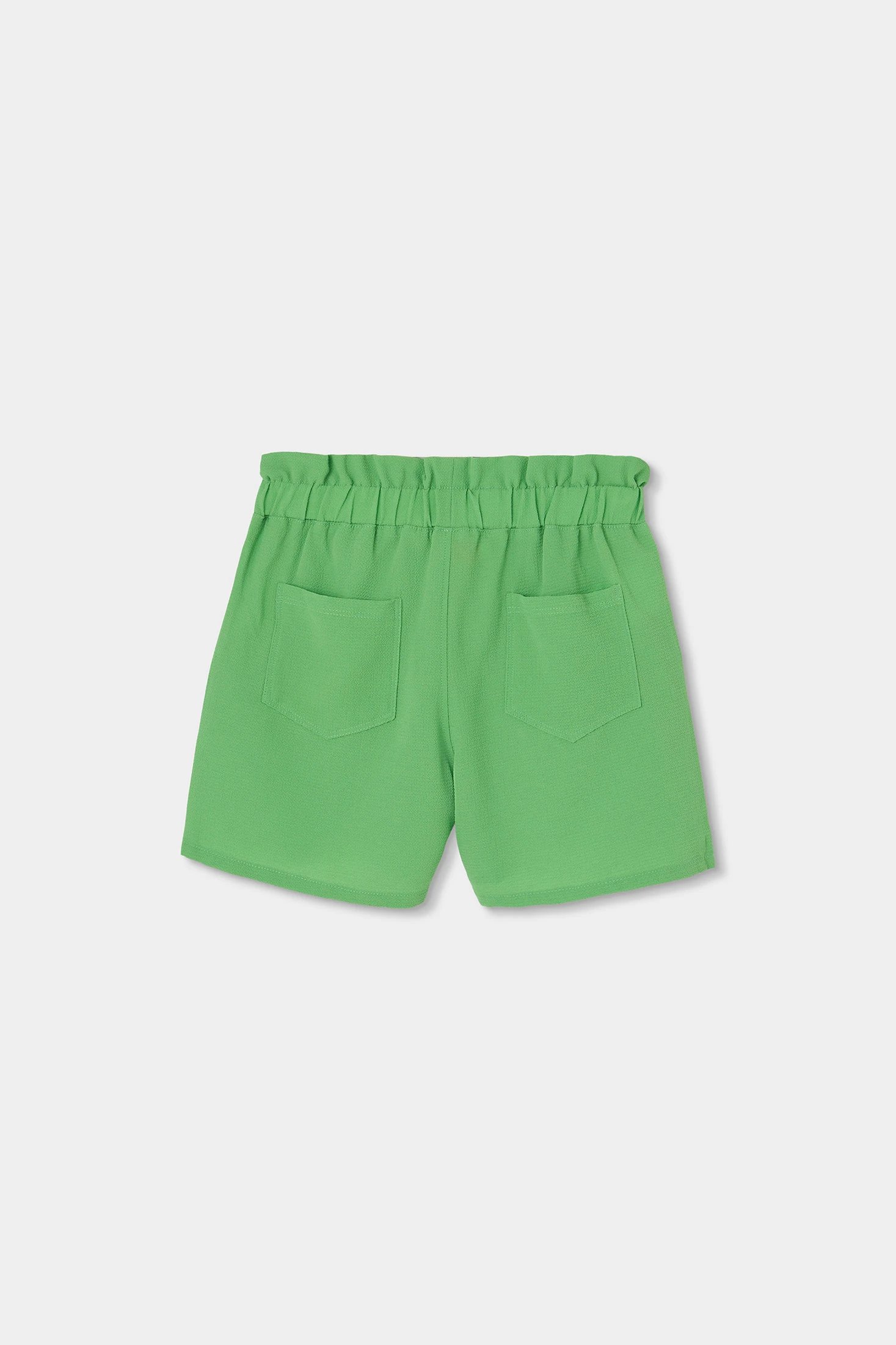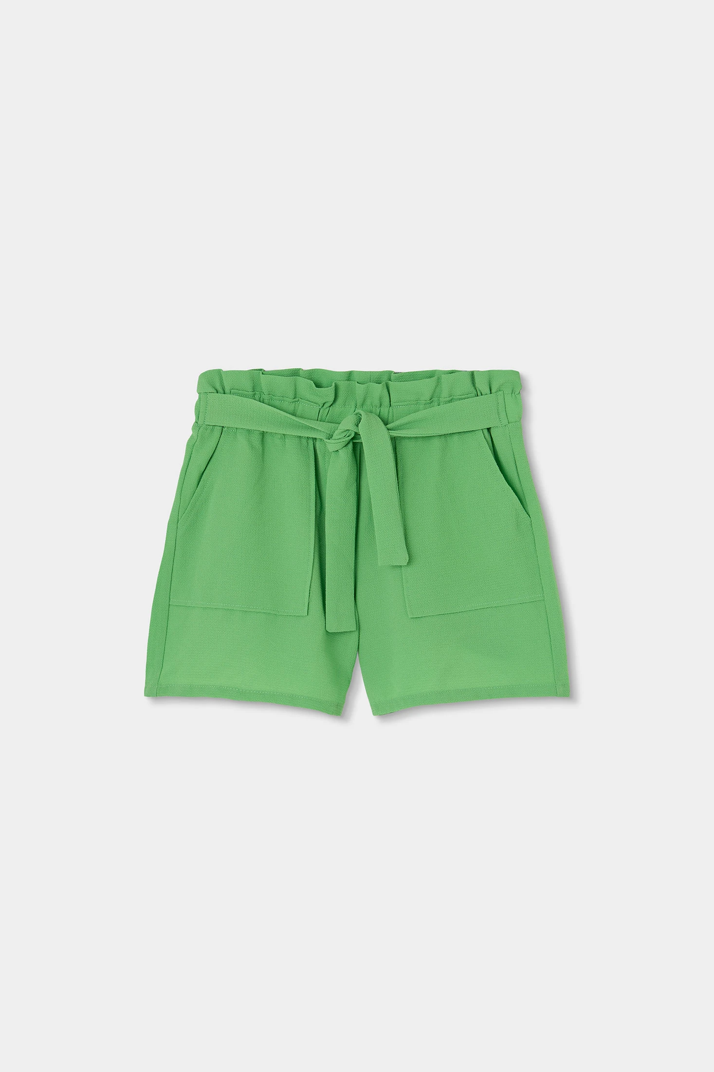 Shorts verts pour fille, idéaux pour les jours chauds, confectionnés en tissu crêpe doux et léger, offrant un confort tout au long de la journée. Le design comprend un noeud décoratif à la taille et des poches avant, ajoutant une touche de style fonctionnel. Disponibles en tailles de 2 ans à 14 ans, ils s'adaptent à la croissance des filles. Leur couleur vibrante les rend parfaits pour être associés à des blouses imprimées ou des t-shirts basiques, créant des looks frais et estivaux. Un vêtement polyvalent et pratique pour la garde-robe enfantine.