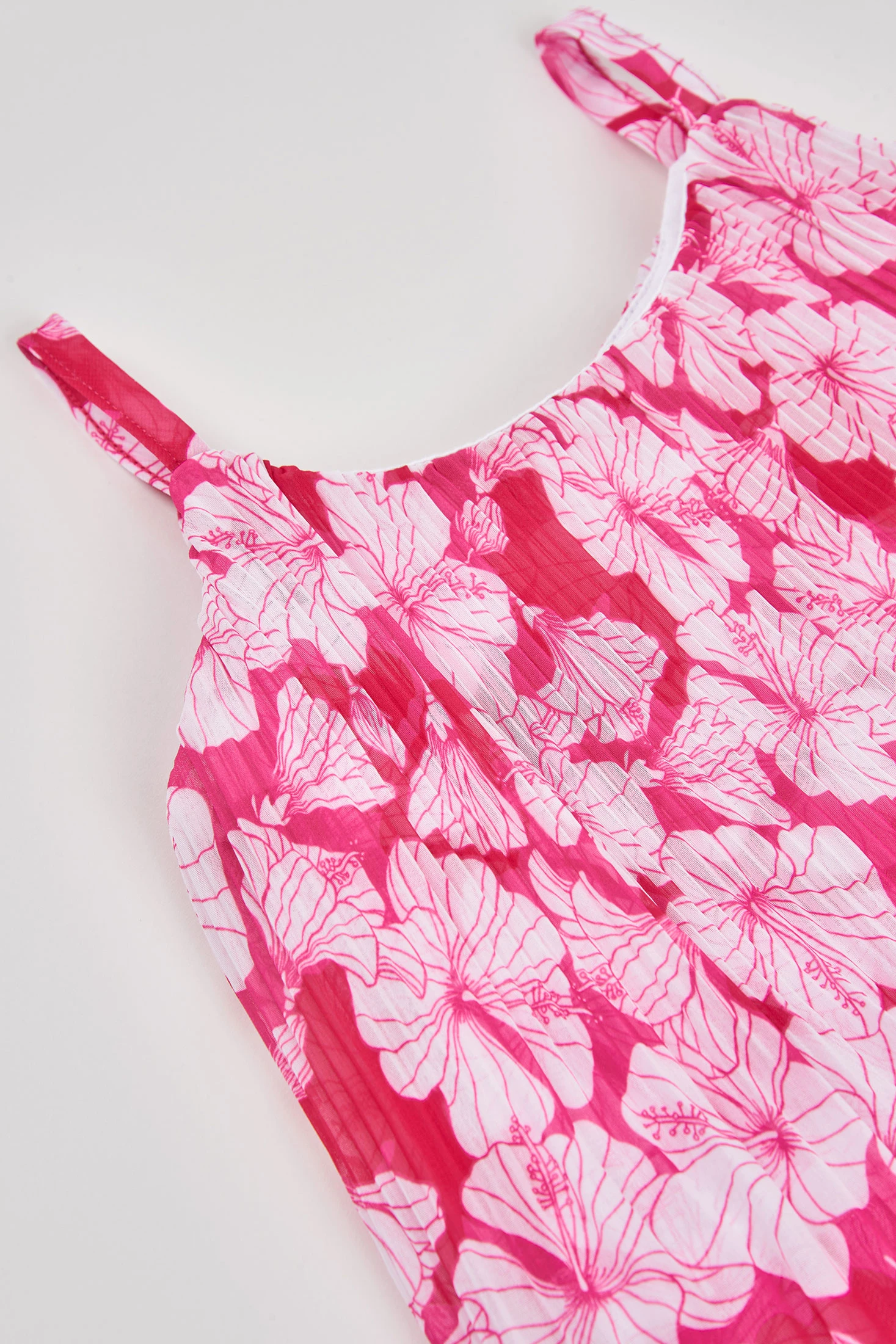 Combinaison en mousseline imprimée, dans un vibrant rose, idéale pour les journées chaudes. Son design présente des fleurs qui ajoutent une touche gaie et sophistiquée. Ses fines bretelles et son tissu léger le rendent parfait pour l'été, offrant fraîcheur et confort. Disponible en tailles de 2 à 14 ans, il s'adapte à la croissance des filles. Son style polyvalent permet de le combiner facilement avec des accessoires légers, idéal pour les occasions décontractées et les événements en plein air.