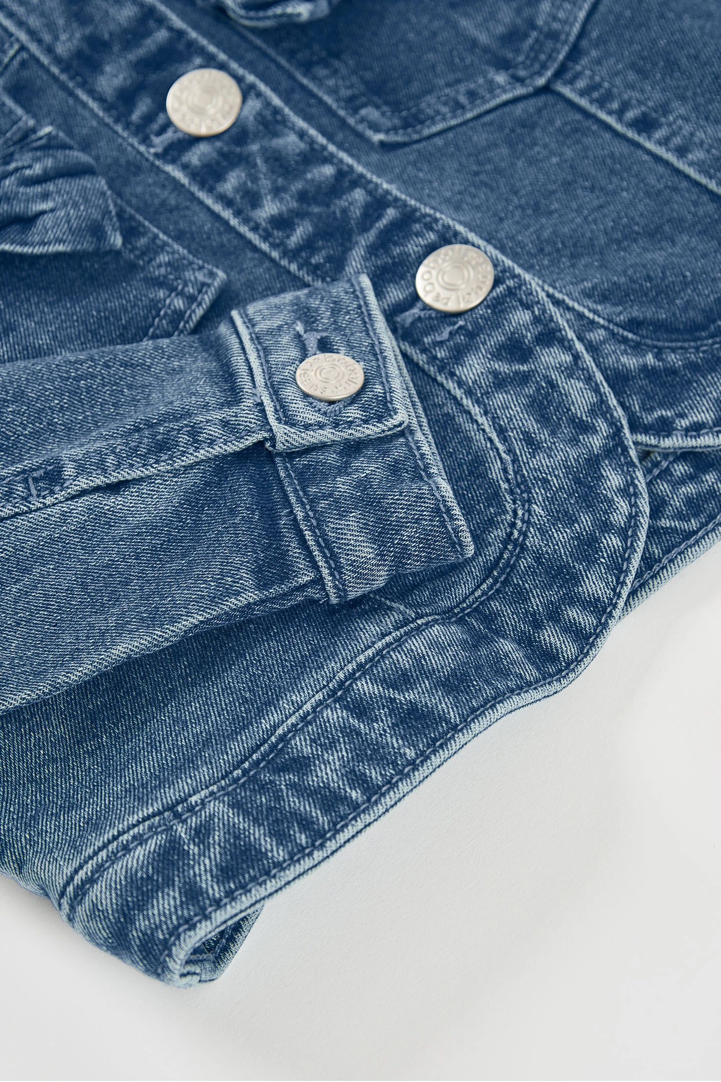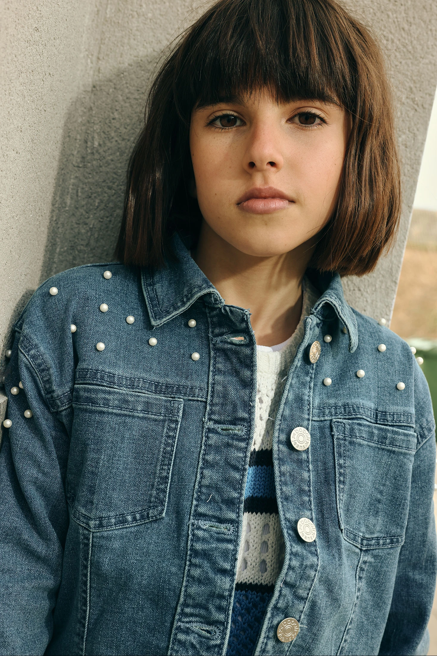 Veste en jean fille couleur délavée avec petits noeuds