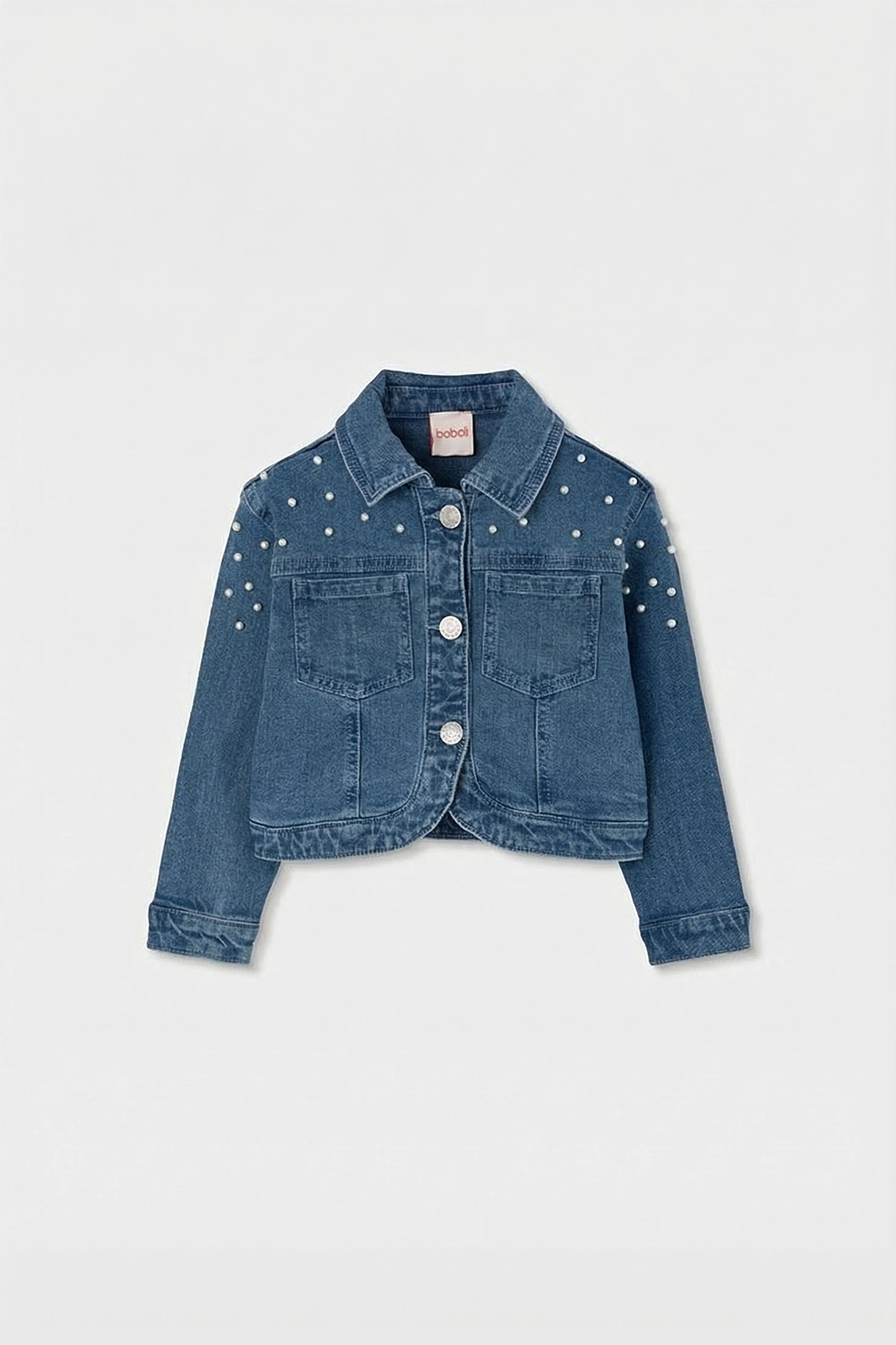 Veste en denim pour fille idéale pour un look décontracté et moderne. Fabriquée en tissu jean bleu clair, elle se distingue par son design avec de petits détails décoratifs en relief qui ajoutent une touche chic. Inclut une fermeture frontale à boutons et des poches à rabat sur la poitrine. Conçue pour offrir du confort, elle est parfaite pour les filles de 2 à 14 ans. Vous pouvez facilement la combiner avec des robes ou des pantalons pour un style polyvalent et décontracté. Les manches longues et la coupe classique en font un vêtement intemporel et pratique pour diverses occasions.