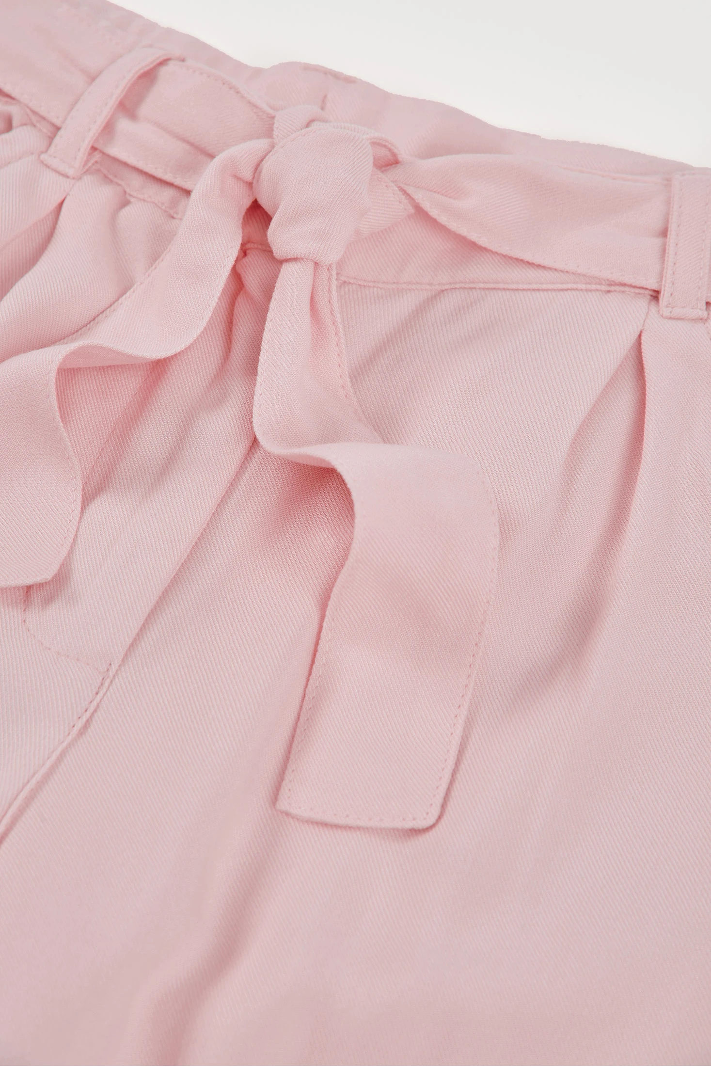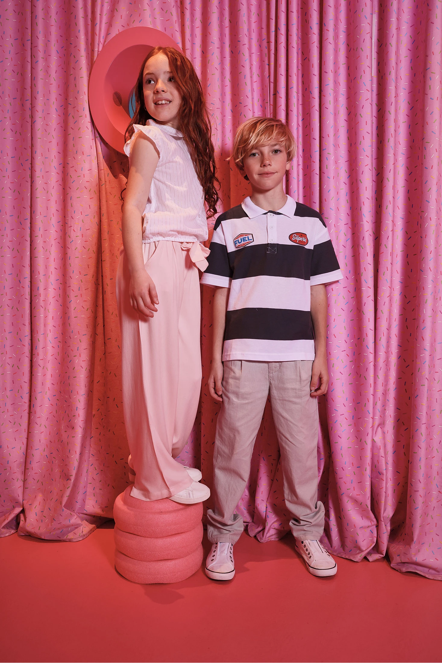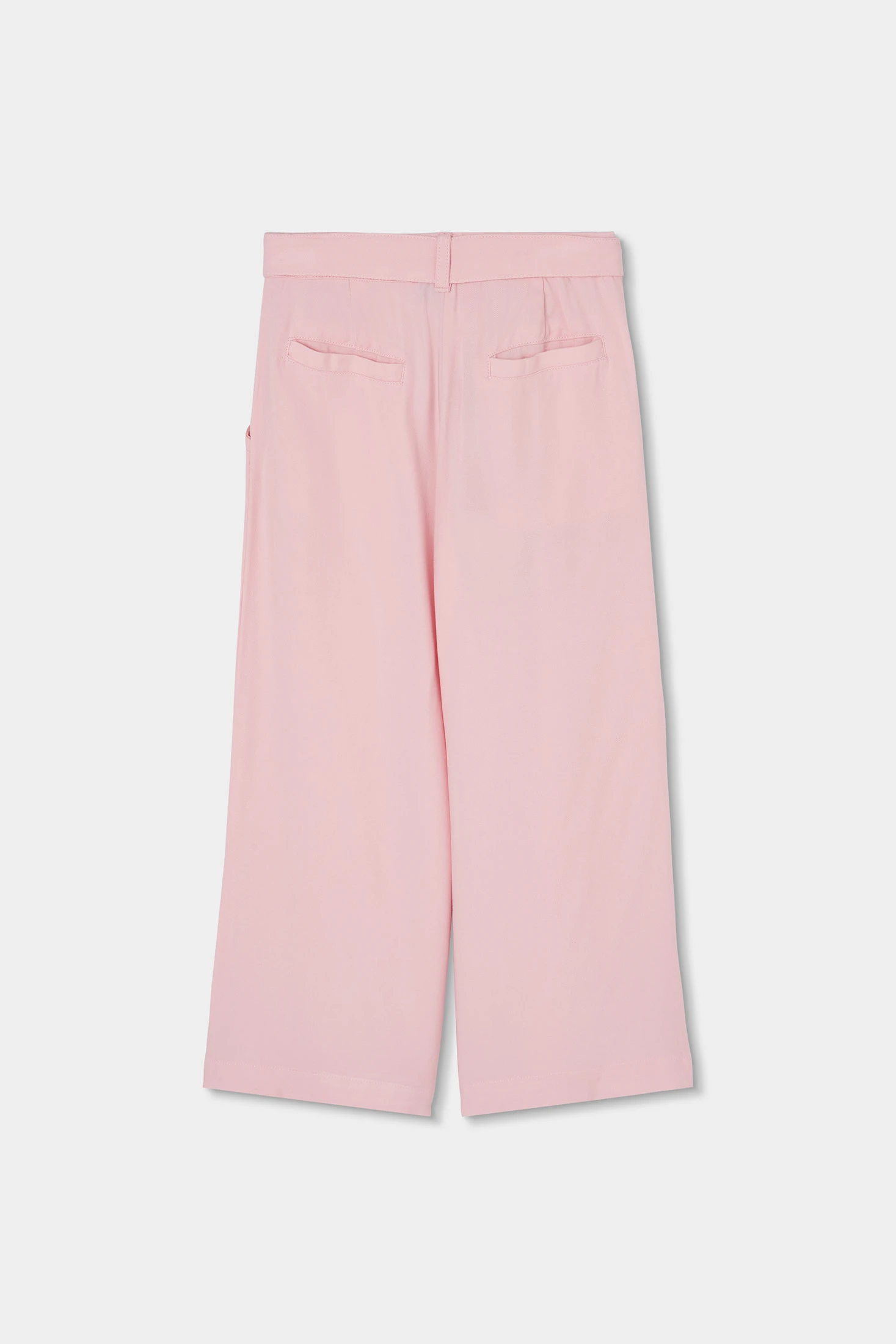 Pantalon rose pour fille idéal pour toutes les saisons grâce à sa coupe à jambe large et son tissu léger. Confectionné dans une matière douce, il assure un confort tout au long de la journée. Comprend un ruban à la taille pour un ajustement élégant et des poches fonctionnelles. Disponible en tailles pour les âges de 2 à 14 ans, il offre une option polyvalente pour se combiner avec différents styles de hauts. Son ton rose ajoute une touche de douceur, parfait pour créer des looks frais et modernes.