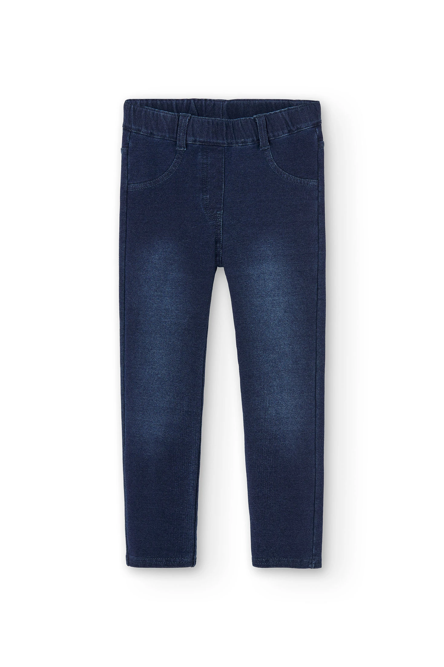 Pantalon en molleton denim pour fille. De couleur bleue, il présente un design uni avec une finition effet denim, alliant style et confort. Il est confectionné dans un molleton doux et élastique, avec une composition de 78% coton, 15% polyester et 7% élasthanne, offrant confort, flexibilité et un ajustement agréable. Une pièce pratique et polyvalente, idéale pour un usage quotidien et pour créer des looks confortables.
