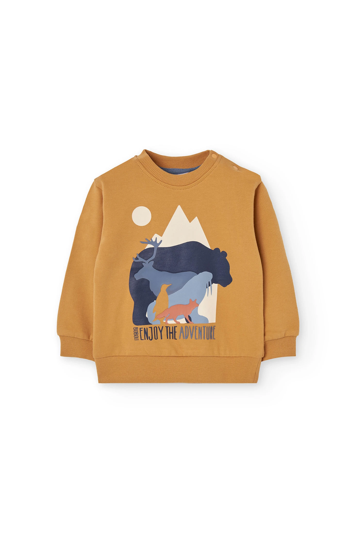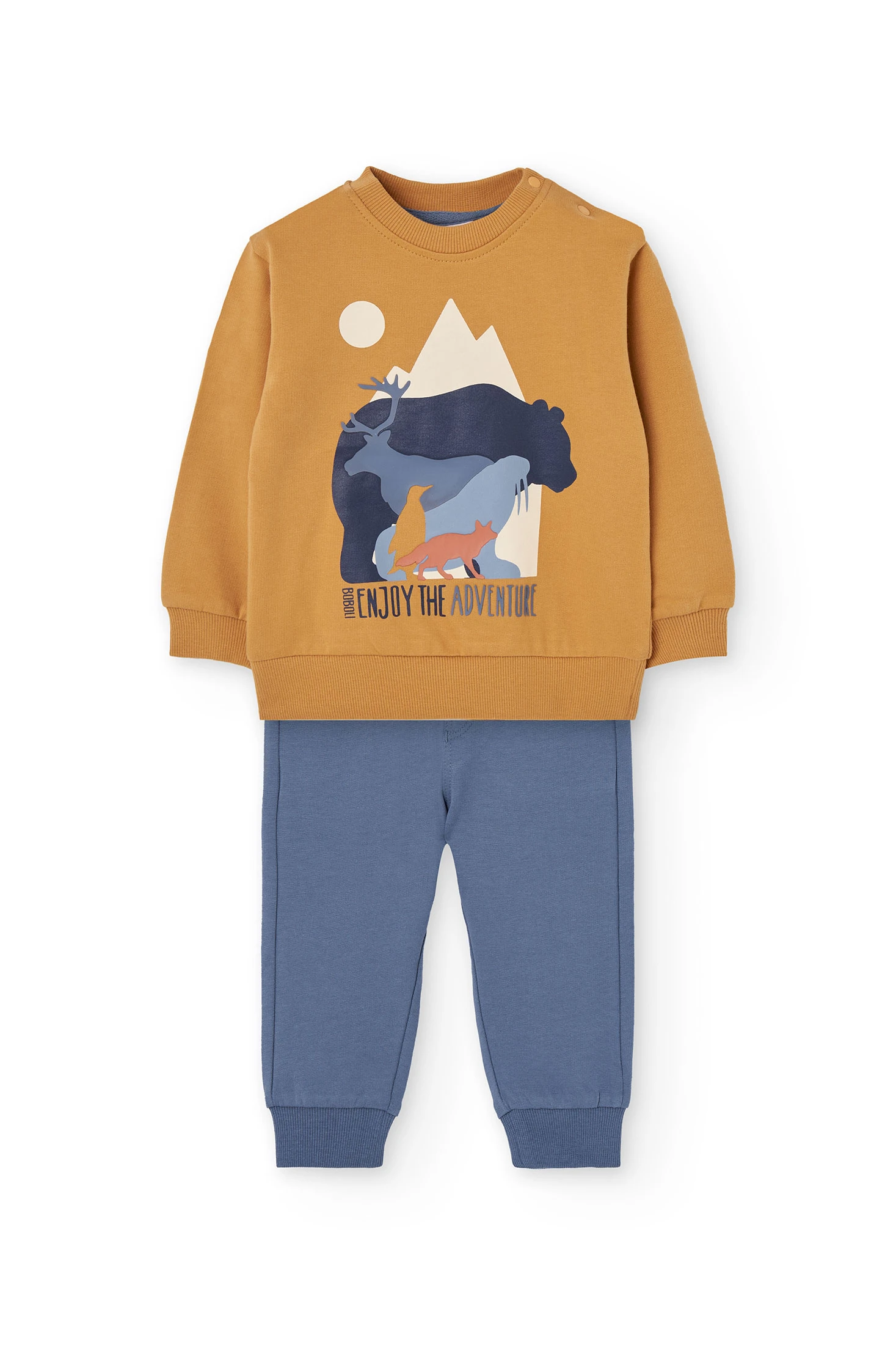 Ensemble en tricot de couleur jaune, idéal pour les enfants pendant la saison automne-hiver. Le design paysager sur la sweatshirt ajoute une touche ludique et originale, tandis que les matériaux doux assurent un confort maximal. Comprend un pantalon qui offre une liberté de mouvement et est disponible en tailles pour les âges de 12 mois à 10 ans. Parfait pour se combiner avec des bottes ou des baskets, créant un look chaud et moderne pour les aventures quotidiennes des plus petits.