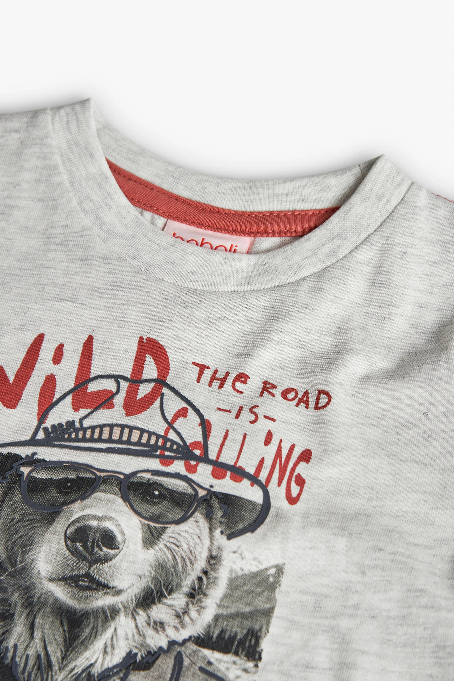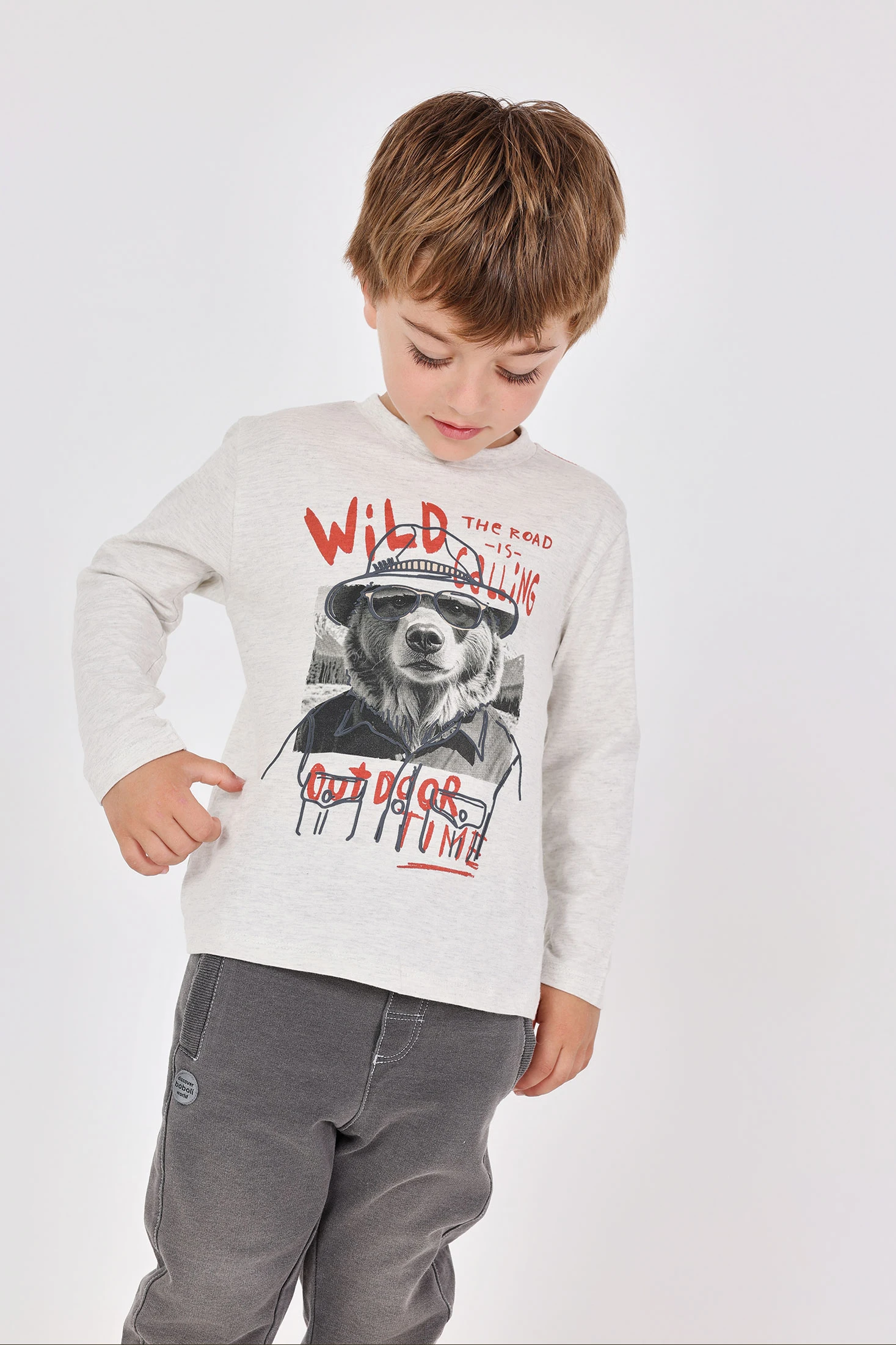 T-shirt en maille de couleur écrue pour garçon, parfaite pour les saisons d'automne et d'hiver. Confectionnée dans un tissu doux, elle garantit un confort tout au long de la journée. Elle présente un design charmant avec un ours, apportant une touche de gaieté à la garde-robe enfantine. Son col rond facilite une utilisation quotidienne simple et c'est une option idéale pour assortir avec des pantalons décontractés lors des journées plus fraîches. Disponible en tailles allant de 12 mois à 10 ans, c'est un vêtement pratique et moderne pour compléter la garde-robe des plus petits.