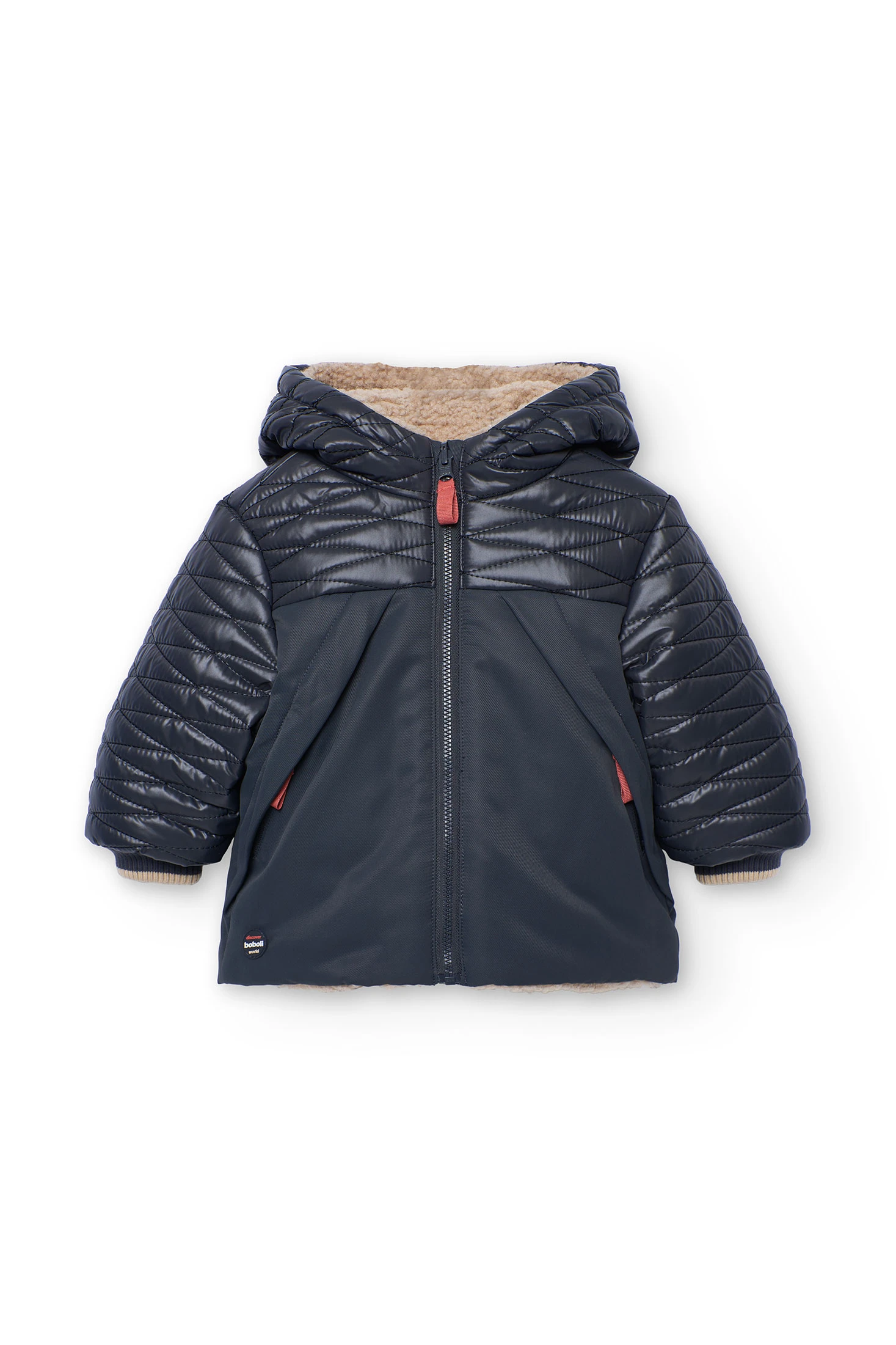 Parka en tissu technique réversible gris pour garçon, idéale pour les mois froids, offrant chaleur et protection contre le vent. Confectionnée dans des matériaux de haute qualité, elle présente un design polyvalent qui alterne entre un côté gris uni et une finition matelassée. Équipée d'une capuche et d'une fermeture éclair, elle assure confort et facilité d'utilisation. Disponible en tailles de 12 mois à 10 ans, ce vêtement se combine parfaitement avec des pantalons ou des salopettes, garantissant que les petits soient au chaud et avec style.