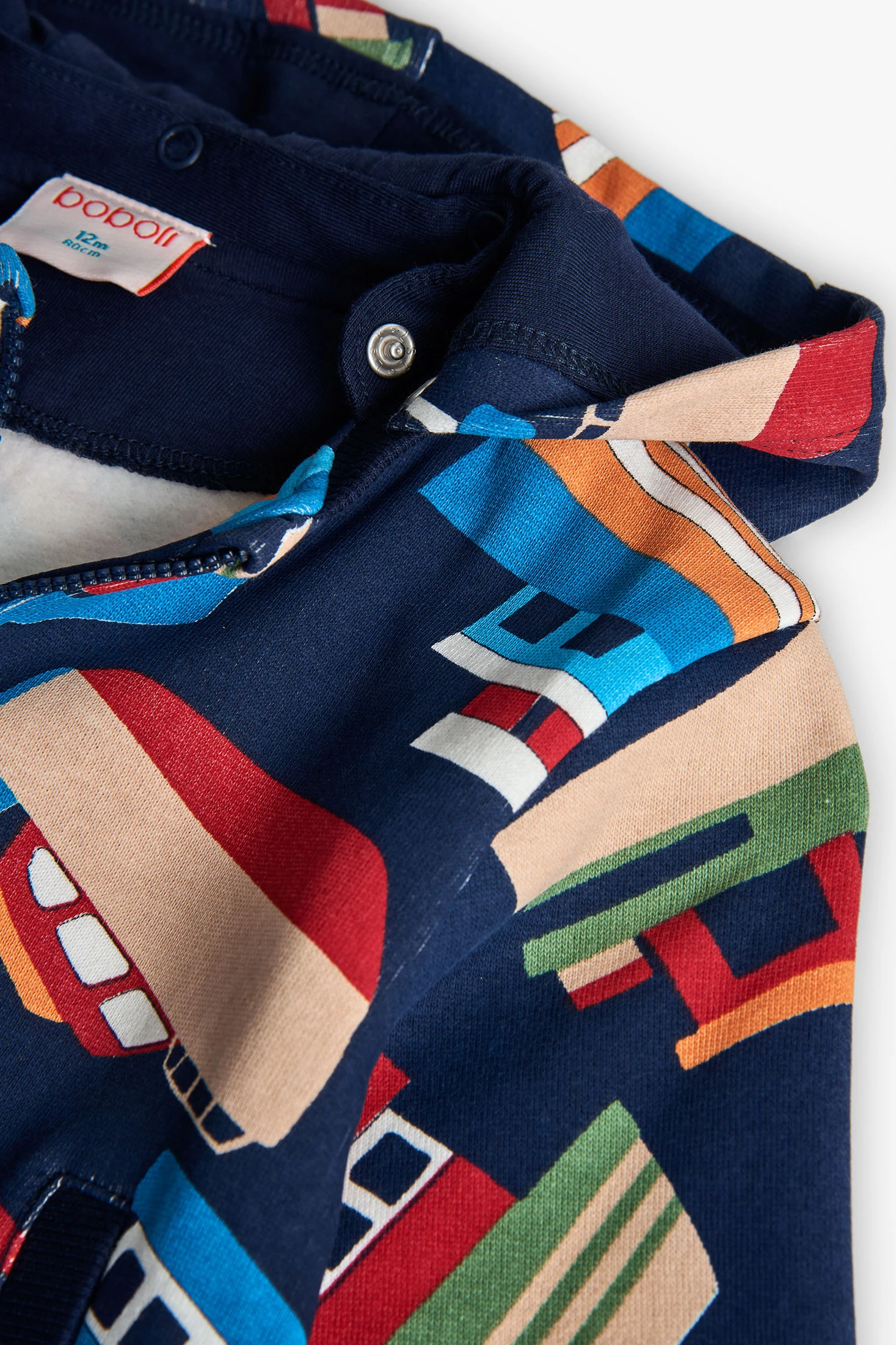 Veste en peluche pour enfant de couleur bleu marine avec un design de bateaux charmant, idéale pour garder votre petit au chaud pendant les mois d'automne et d'hiver. Confectionnée dans un tissu de peluche doux, le vêtement offre confort et chaleur sans sacrifier le style. Elle dispose d'une fermeture éclair pratique qui facilite son enfilage et sa couleur bleu marine classique la rend facile à assortir avec n'importe quelle tenue. Disponible en plusieurs tailles pour s'adapter à la croissance de votre bébé, la veste se marie très bien avec des jeans ou des pantalons confortables pour un look décontracté mais soigné. Une option élégante et polyvalente qui ne peut manquer dans la garde-robe de