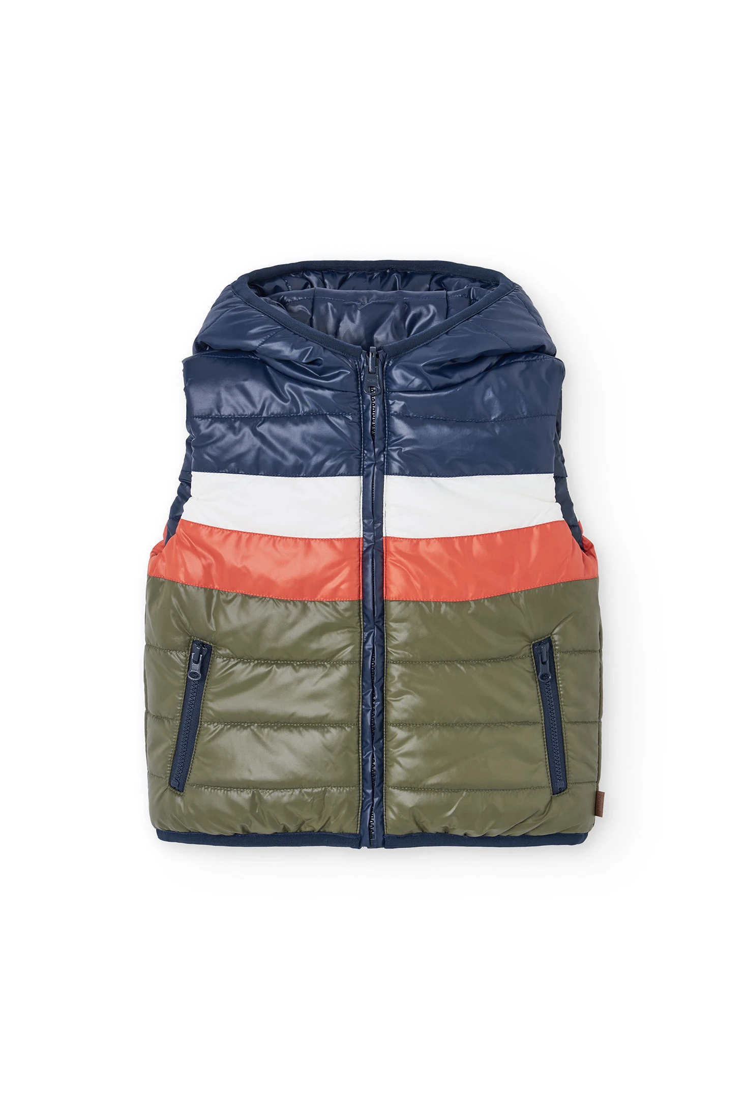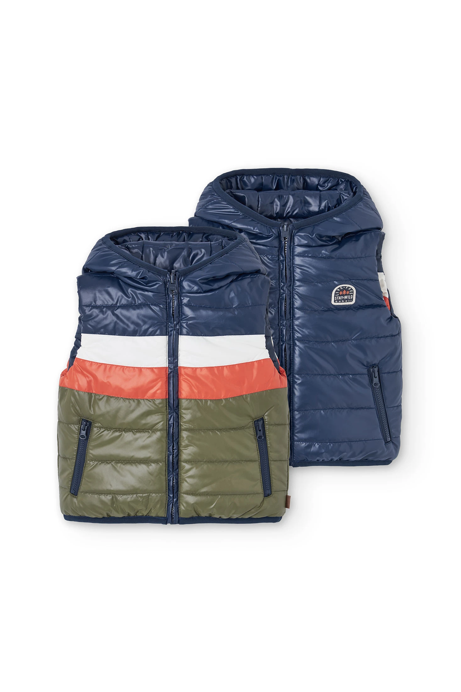 Gilet réversible en tissu technique réversible, idéal pour les enfants, parfait pour les saisons d'automne et d'hiver. Il présente un design en blocs de couleurs : bleu marine d'un côté et rouge et vert olive de l'autre, offrant polyvalence et style. Confectionné avec un matériau résistant à l'eau, il offre chaleur et protection contre le froid. Disponible en tailles de 2 à 14 ans, il se combine parfaitement avec des pulls et des t-shirts à manches longues, assurant que votre enfant soit au chaud et confortable pendant les jours les plus froids.