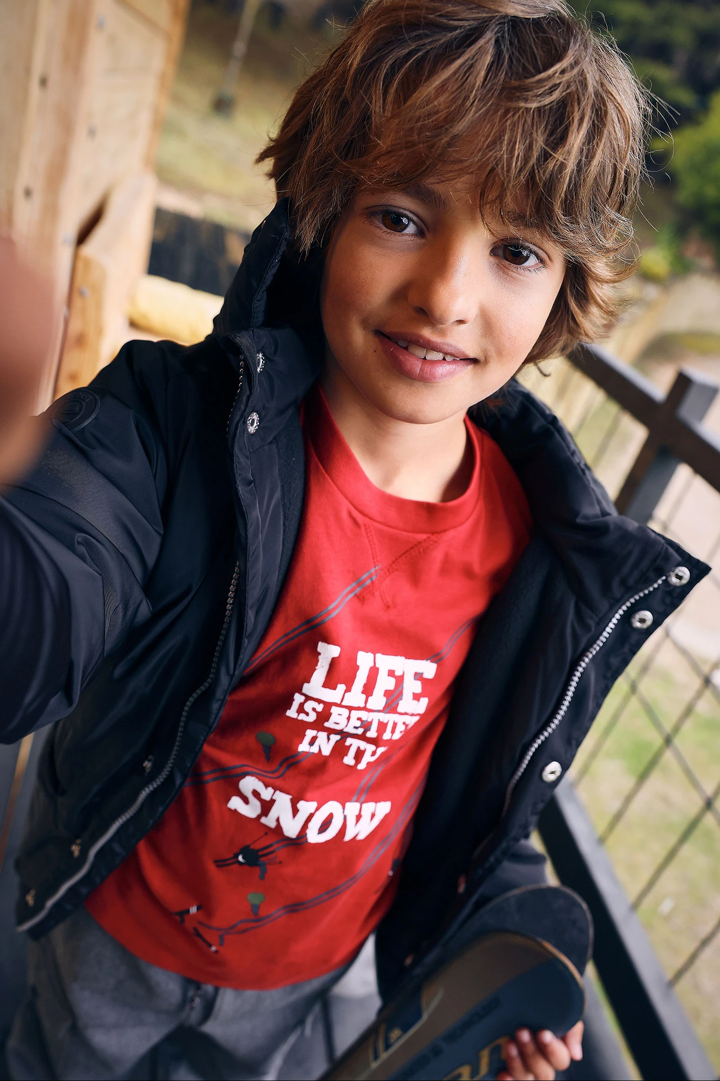 T-shirt garçon en coton rouge ski